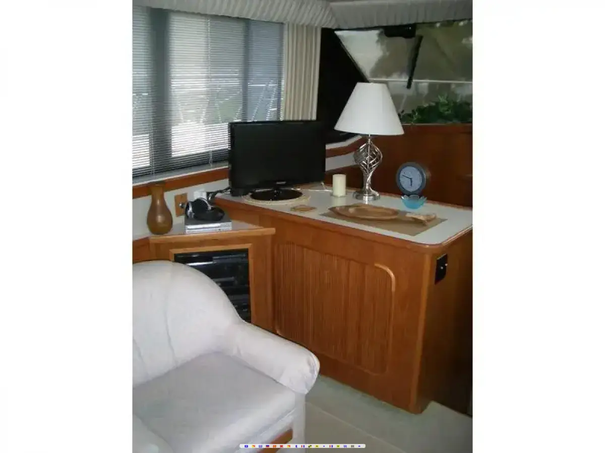 Extremely well maintained, this lower helm, aft-cabin Carver is essentially a "waterfront condo" with built-in speakers throughout, wet bar, and three (shore or generator powered) AC units - one in the main salon and one in each bedroom. Both the master suite and guest bedroom have individual heads and showers and the galley has plenty of cabinets including a handy wall pantry.