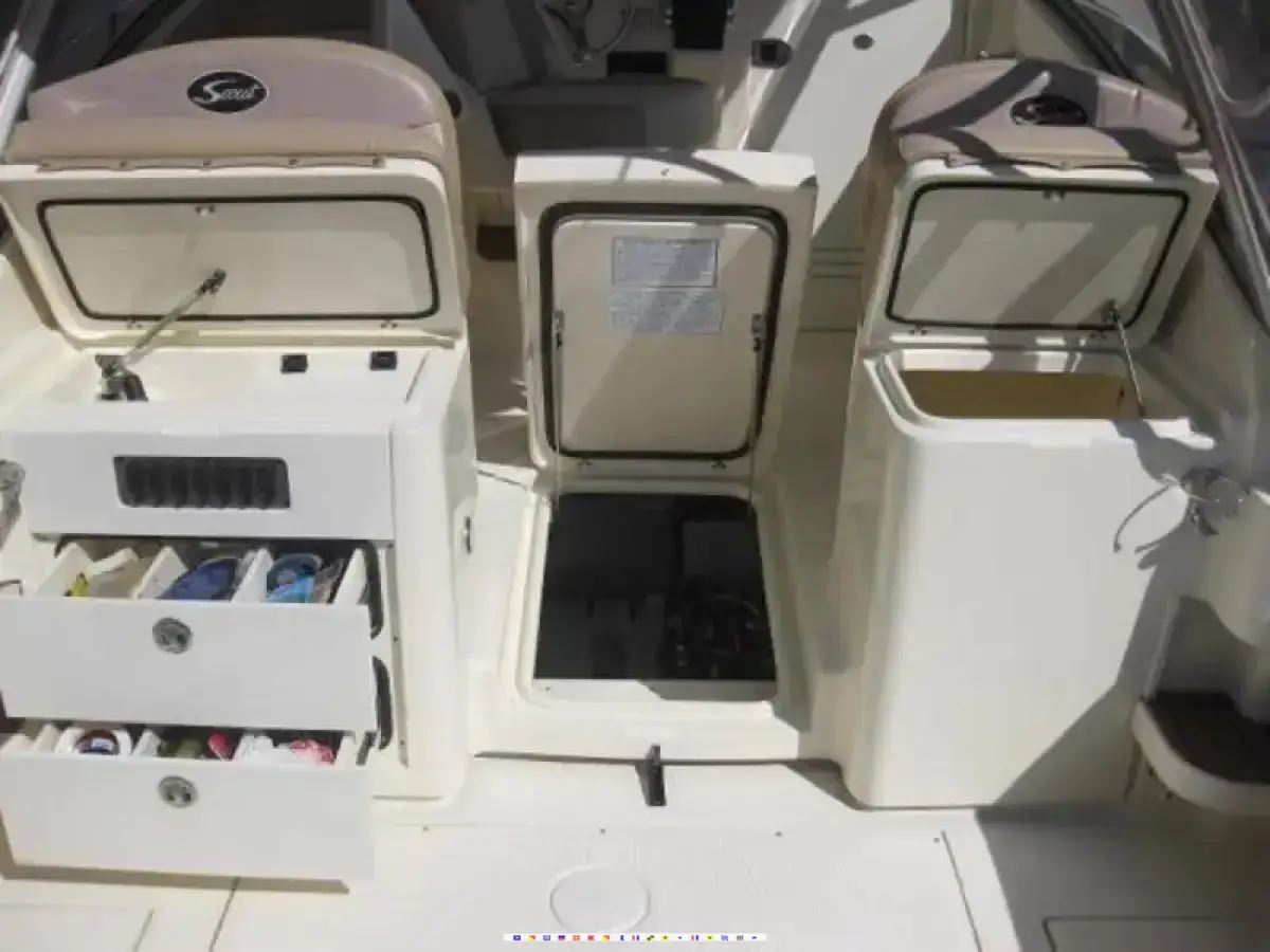 Meticulously maintained, super clean, loaded up fishing machine ready to go today!! 2008 Scout 295 Abaco being pushed by twin Yamaha 250 4strokes (125 hours) w - extended warranty. Sitting on a custom built 2009 Boat Wheels all aluminum triple axle trailer w - many upgrades. This boat is loaded up with the following options and accessoriesFuruno chartplotter - fishfinder - sonar - 24mile radar & C-Map SD card for the gulf coast, icom VHF radio, JBL stereo system w - 2 head units, (6) infinity speakers & JBL amplifier LOUD, Yamaha digital gauges, removable transom bench seat, transom live well, (2) fish boxes, tackle storage, cockpit fresh water sink, fillet table, ice box, port side mid-ship bench seat, large windshield w - removable eising glass, taco grandslam telescoping outriggers, sea star hydraulic steering, (12) rod holders, gunnel rod storage, large entrance to cabin, microwave, stove-top, refrigerator, fresh water sink, water heater, V-birth w - removable table and fill pads, enclosed marine head w - fresh water sink & shower head, aft birth, electric windlass w - stainless steel 22lb Delta anchor, bottom paint, navigation lights and courtesy lights. Engines just had a full annual service performed on them and the entire boat was just detailed. Perfect fishing boat that can be used for many different occassions. PRICE HAS JUST BEEN REDUCED TO $124,995.00. WANT IT GONE!! Any questions please contact Greg Walker at (361) 960-3051.
