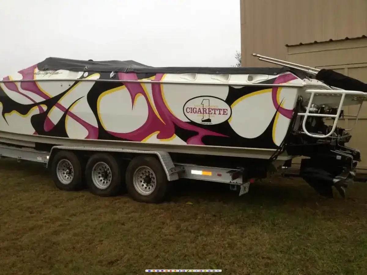 1999 CIGARETTE TOP GUN ALL ORIGINAL, STORED INDOORS, SWIM PLATFORM, EXTERNAL STEERING, BRAVO 4 BLADES, TRIM TABS, MUFFLERS, OIL CHANGE SYSTEM, SEA STRAINERS, NEW EXHAUST, RECENT ENGINE REBUILDS, DEPTH SOUNDER, WHITE DASH, MAP HOLDER, SS BIMINI TOP, FULL CABIN. BOAT IS WELL MAINTAIN, MECHANICALY 100%, NEEDS SMALL COSMETICS AND NEW HEADLINER. CALL FOR MORE INFORMATION 352-266-3910 Ralph Martin