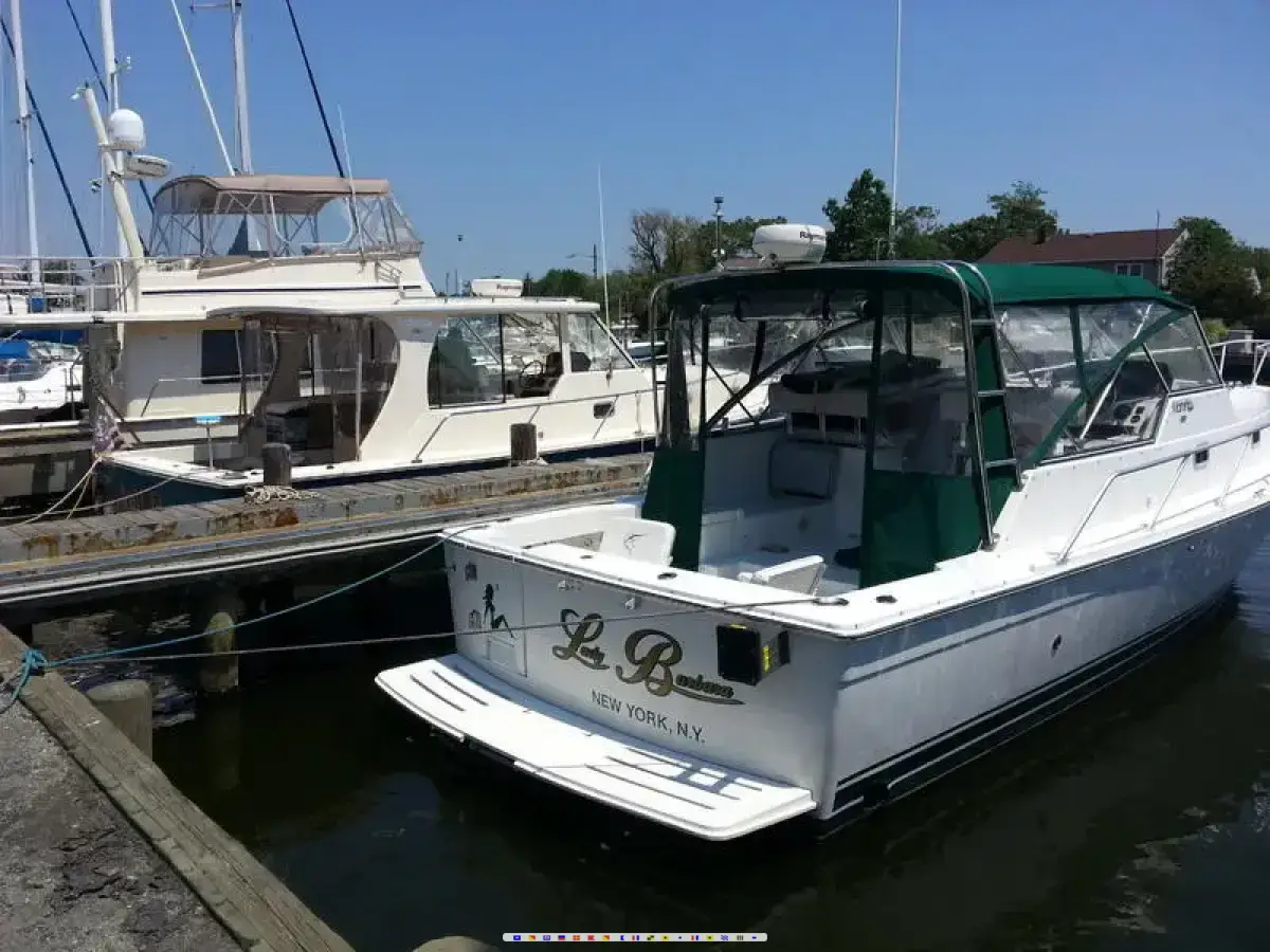 A very clean boat. Yanmar 370 hp diesel engine, Bimini with enclosure, Air conditioning, Bow Thruster, Generator, Swim platform, Freshwater washdown, Speed and depth, Windlass, Radar arch - Raytheon radar, 110 Share power, Stove, Pressurized fresh water system