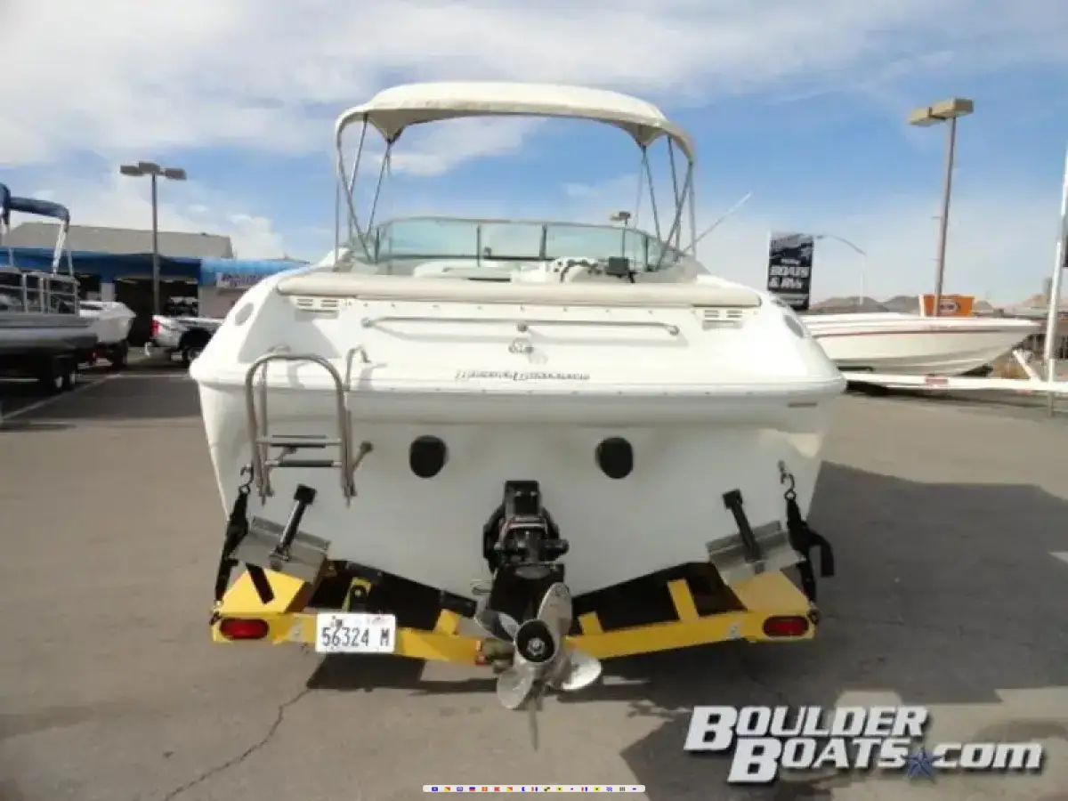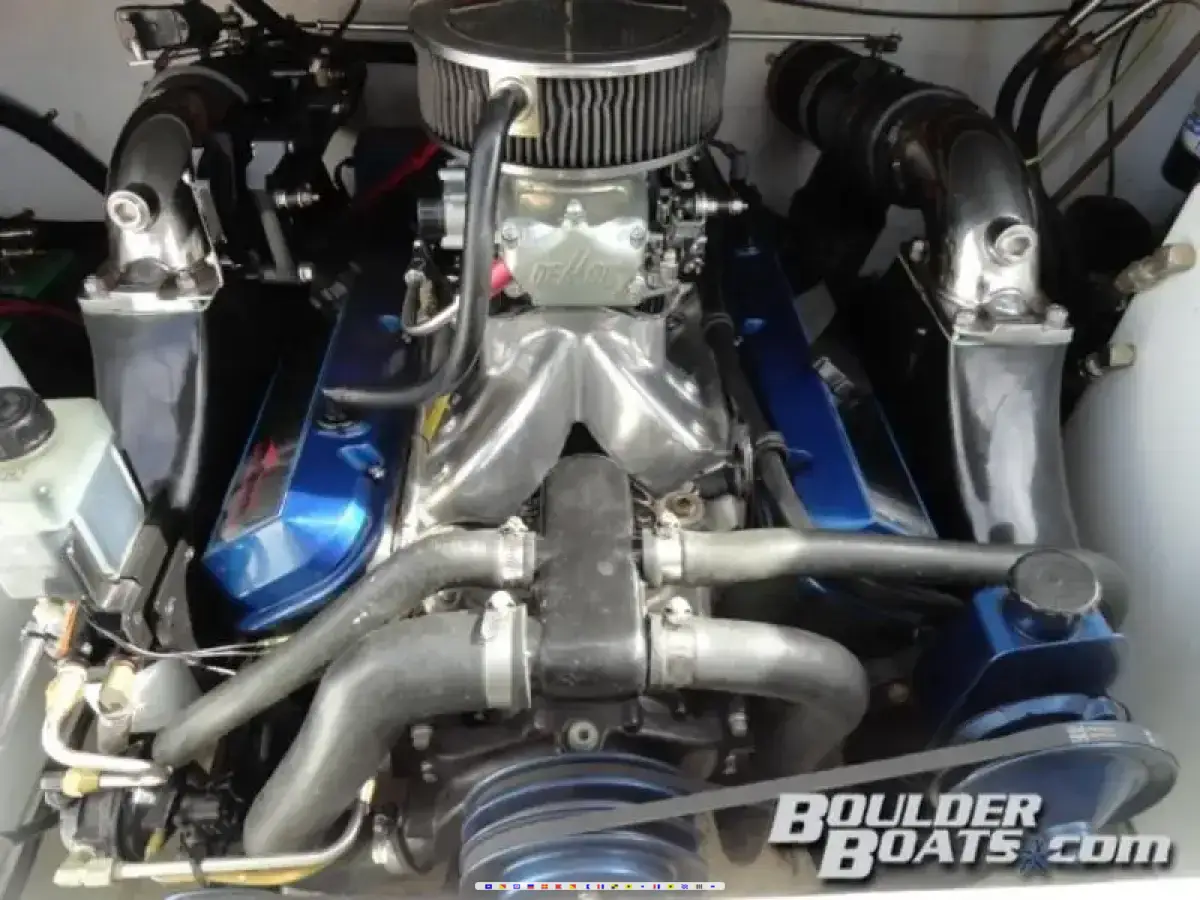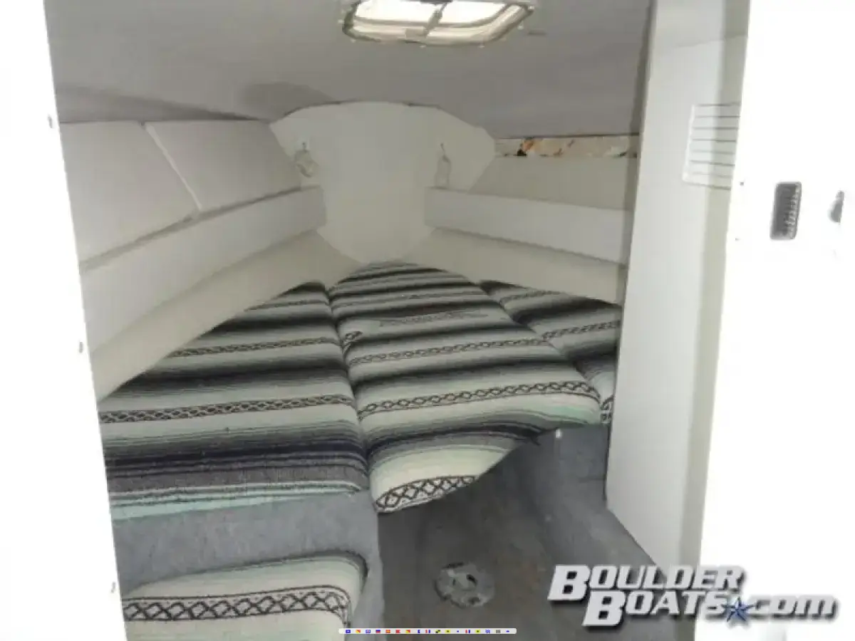 Featuring: Mercruiser 454 bored and stroked to 496, 425 HP with Bravo One outdrive, full instrumentation, depth - fish finder, marine radio, power steering, Sony stereo w - 10 disc CD changer and amp, lighted cabin, removable table, enclosed head, built-in cooler, snap out carpet, cup holders, bimini top, tons of storage, dual batteries w - switch, transom shower, trim tabs, stainless steel prop, cockpit cover, and a matching tandem axle trailer w - spare.