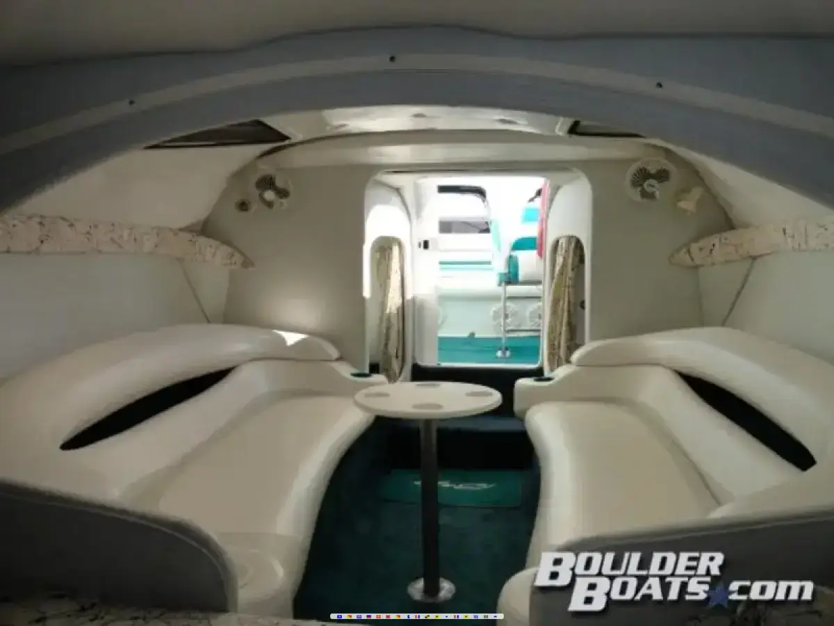 Featuring: Twin Mercruiser 454 Mag MPI's, 385 HP with Bravo One outdrives, full instrumentation, depth finder, tilt - power steering, docking lights, Alpine AM - FM MP3 satellite ready stereo w - 2 amps, glove box, snap out carpet, cup holders, bimini top, cabin w - V-berth, removable table, lights, fans, carpet and tons of storage, power engine hatch, 4 batteries w - switches, extended swim platform w - ladder, silent choice exhaust, trim tabs, stainless steel props, cockpit cover, and a matching triple axle trailer w - spare.