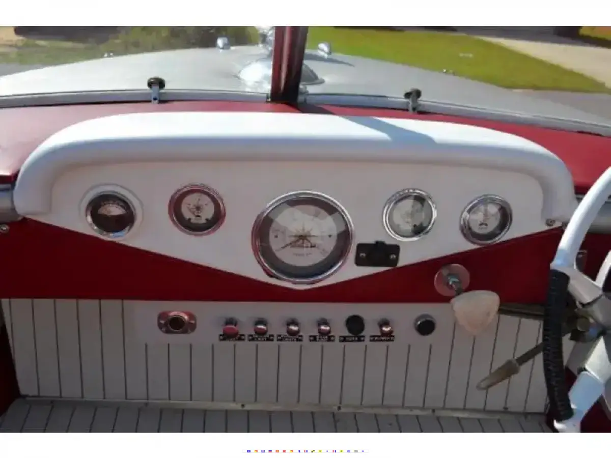 Original engine and all accessories have been refurbished. The hour gauge reads 550 hours and is said to be true hours since the boat was only taken from showroom or indoor storage to display at shows. Engine has only been run 3 hours since full rebuild.