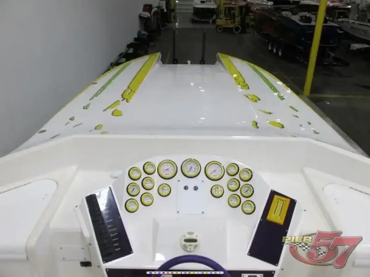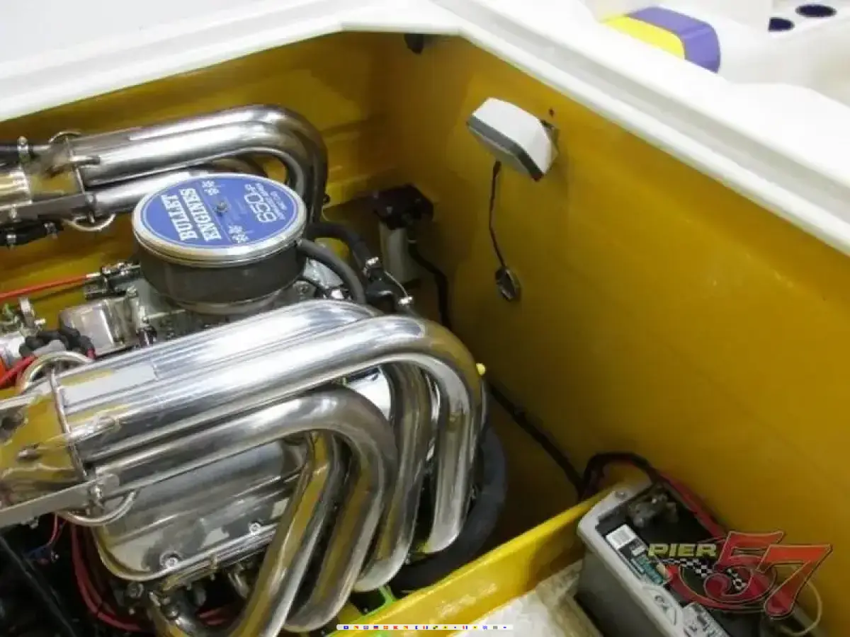 Posted pics are from Pier 57. I bought the boat from them. Please do not contact Pier 57, they no longer have the boat. Boat is in excellent condition. Was in storage for 3 years. Engines were replaced in 2008 by Bullet Engines. Was just completely service and tuned, all fuel lines were replaced, carbs rebuilt, drives were inspected and pressure tested. Trailer bunks were replaced were needed and recovered. Green panels in interior have been replaced with white. Will include a custom 2004 F650 pickup for $25,000 with full purchase price.