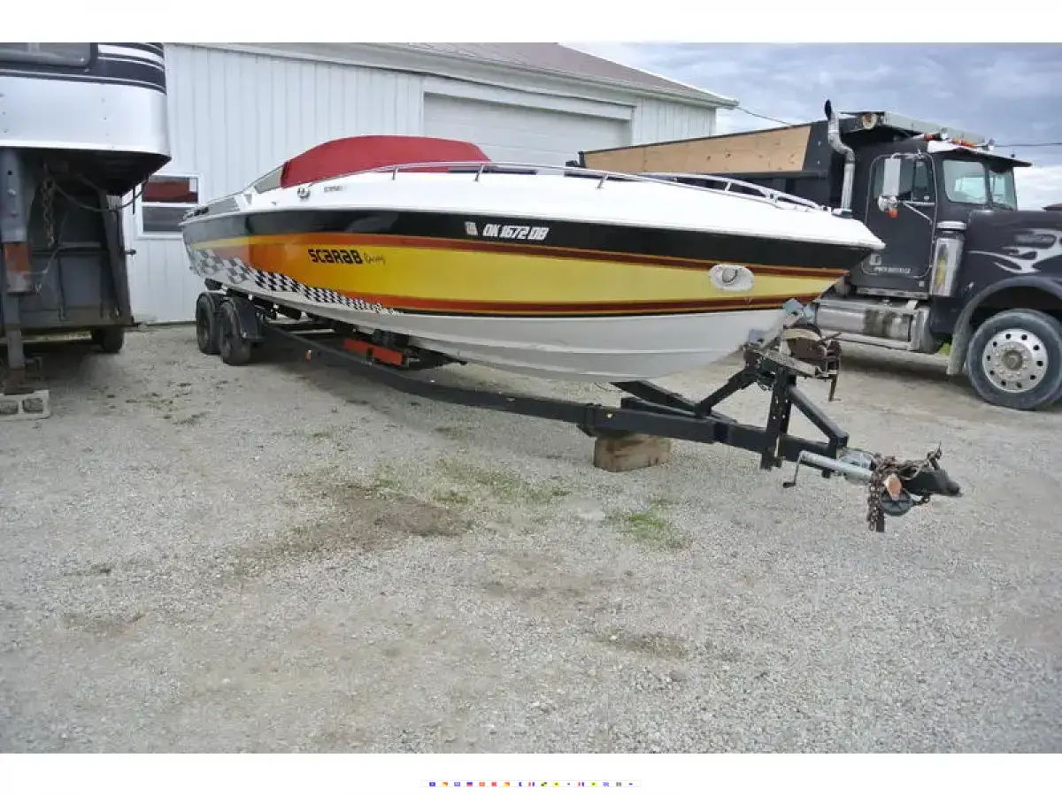 I am selling a Scarab II 29 foot. Interior is in excellent condition. I have almost 12000 in the motors. Boat has 2 454 big block chevy motors. Motors have 15 hours bored 60 over, balanced, forged pistons, big cams. Motors came off the dyno at 500 hp. Also is set up to run a 100hp shot of nitrous on each motor. Carbs are Quick fuel 850 double pumpers. Transmissions are rated for 1000 hp has TRS outdrives has new gimble bearings and shaft bellows. Props are 4 blade stainless 24 pitch. Marine grade alpine cd player, 8 Memphis 6 inch marine speakers, 2 15 inch Memphis subs in custom box. For more info or questions you can contact Brandon at 937-570-9409. Shipping arrangements can possibly be made. Call for info.