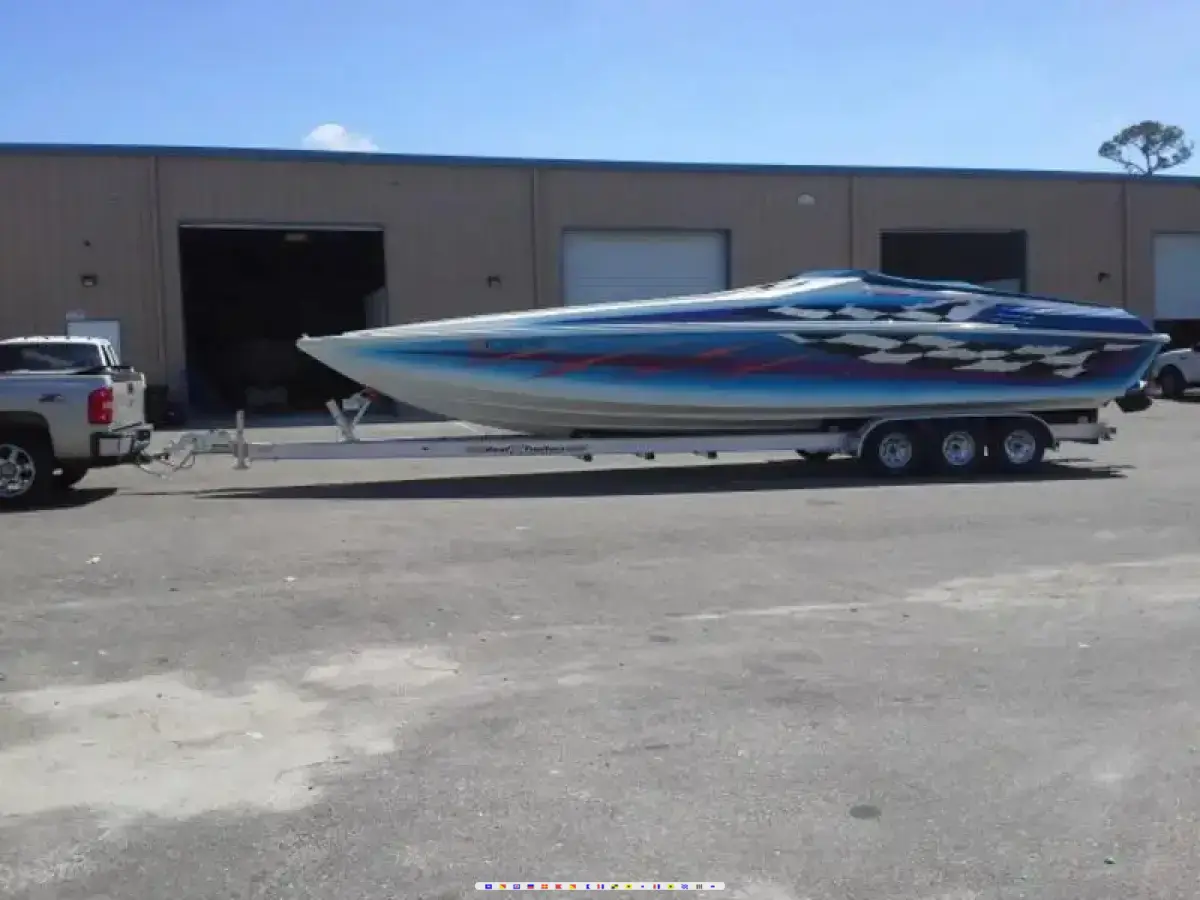 2005 Sonic 358. Twin Merc 496 MAG HO (w - closed cooling), Bravo 1 drives, Bravo 4 blade 24P props, IMCO hydraulic steering, Kplanes, switchable exhaust, shore power, graffiti gauges, halon system, full JL system with sub, TV, DVD player, microwave, sink, and fridge, electric flush head, snap in cabin and cockpit carpet, 2 Garmin GPS systems (one charting and one dash information). Boat has been stored indoors it's entire life, has a 2013 "Real X trailer", 3 axle with twin disc brake, survey from Ed Cozzi in oct 2013, all maintenance work done and up to date, new impellers (July 2014), and cared for with an open check book. Still using to date and has 490 hrs. $88,000 obo. Call Nate at 727-519-5033, boat is able to be viewed at almost anytime in the storage unit located in Tampa