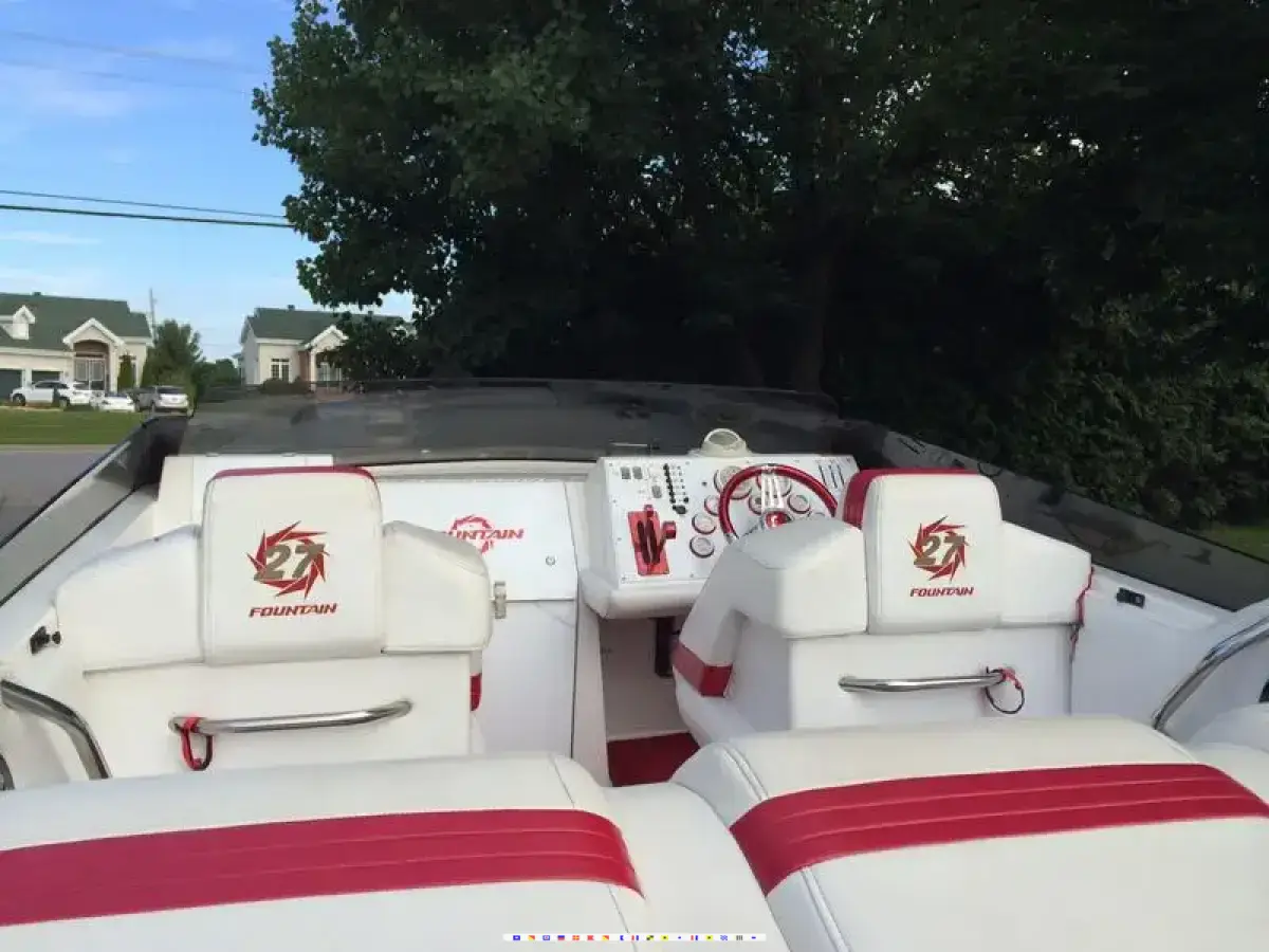 Very nice Fountain 27 2002 with only 385 hrs of freshwater use. Upgraded Isotta Aria red steering wheel, hydraulic steering, trim tabs, good sound system, Garmin GPS, cockpit carpet, 2 new batteries, Silent choice switchable exhaust, 2 Bravo propellers 24P & 26P.1 cockpit cover and 1 full length cover, Aluminum trailer. Awesome Boat in Extremely Good Condition!! Very Well Maintained! Always Stored Inside!. Surveyed in 2012. We had a lot of fun with that boat and we now upgrade to a bigger boat. 40 500$