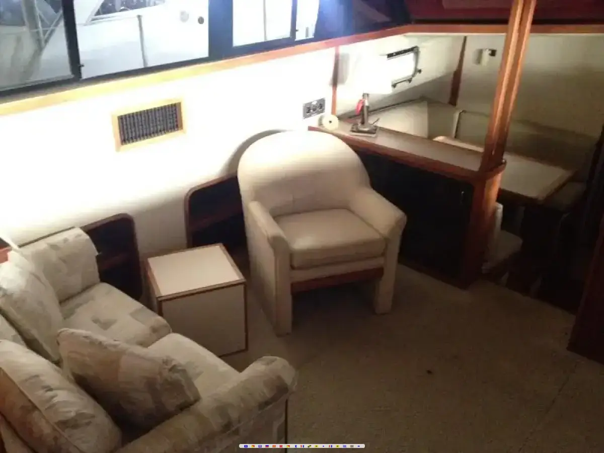 Original Owner - Very well maintained - Upper and Lower Helm - Aft Deck Hardtop - Sleeps 8 - 2 Staterooms - 2 Full Baths - 3 Air Conditioners - Full Bridge and Aft Enclosures - Kohler Generator - Electric Stove - Electric Oven - Full Size Refrigerator - Full Size Dinette - Always Stored Inside Winter Months -