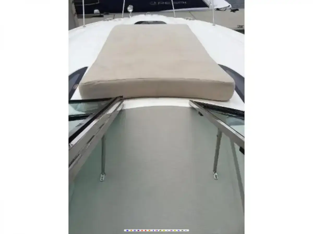 This boat is in spectacular condition inside and out. Joystick control w - skyhook. Twin 377 model Mercruiser 320HP each w - Bravo III Drives, Digital throttle & shift. Only 236 hours. One owner, Racked indoor storage. 5KW Generator, Air Cond, Premium Stereo upgrade, Raymarine GPS, cockpit grill, cockpit refrig, TV - DVD, Central Vacuum system, Remote spotlight, Underwater lights, Electric engine hatch, Wide bench style helm seat w - flip up bolsters, Integral swim platform w - built in rear seat. Absolutely beautiful interior.