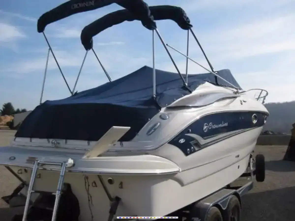 Stock Number: 721335. A sleek, highly functional deep-V hull. A pilot-friendly helm with a flip-up double seat, tilt steering wheel and lifetime warranted stainless steel trimmed Faria instruments. Convenient passenger seating for 9 with lots of luxurious cabin space. On deck or below, the whole boat is accented by a host of passenger-pleasing standards that can be tastefully complemented with a wide choice of top line options. That is what the 250 CR is all about--an easy handling, easily maintained state-of-the-art stern-drive cruiser that delivers on the Crownline promise of total satisfaction. Selling for a friend. Boat and trailer purchased for 88,000 in 2005. Full list of options from original paperwork is available by viewing the pictures. They will show all options plus to make it easy I included the average retail value research which this boat has an average retail value of 40.975. Boat has always been garage stored. Gel coat looks new but one gauge on the upper deck from the Bimini top snap. The electric anchor works but does not free fall. Low hours is a big plus. Boat needs a good cleaning as my friend hasn't used it in a long time. Call John 513-616-3369.