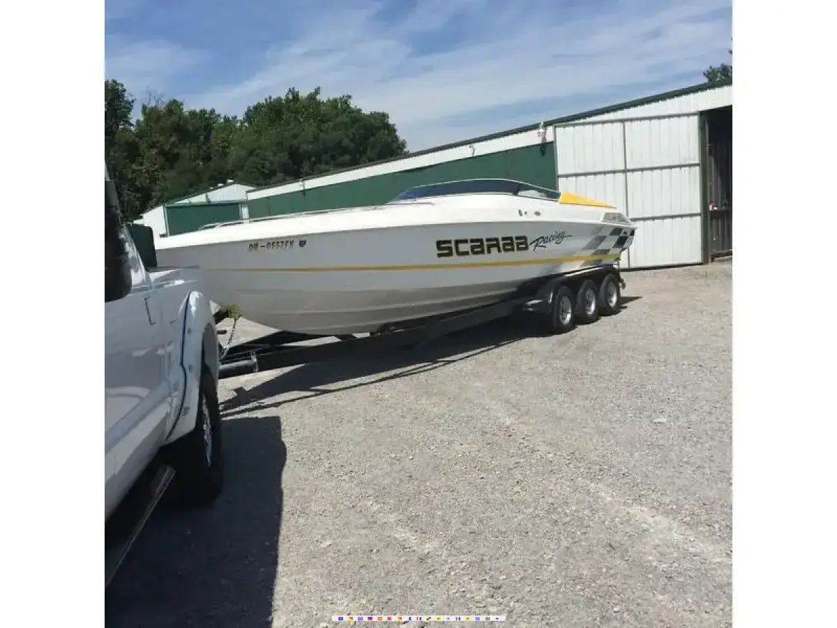 This 1997 29 foot Scarab is sitting on a eagle triple axle trailer with 6 brand new tires.