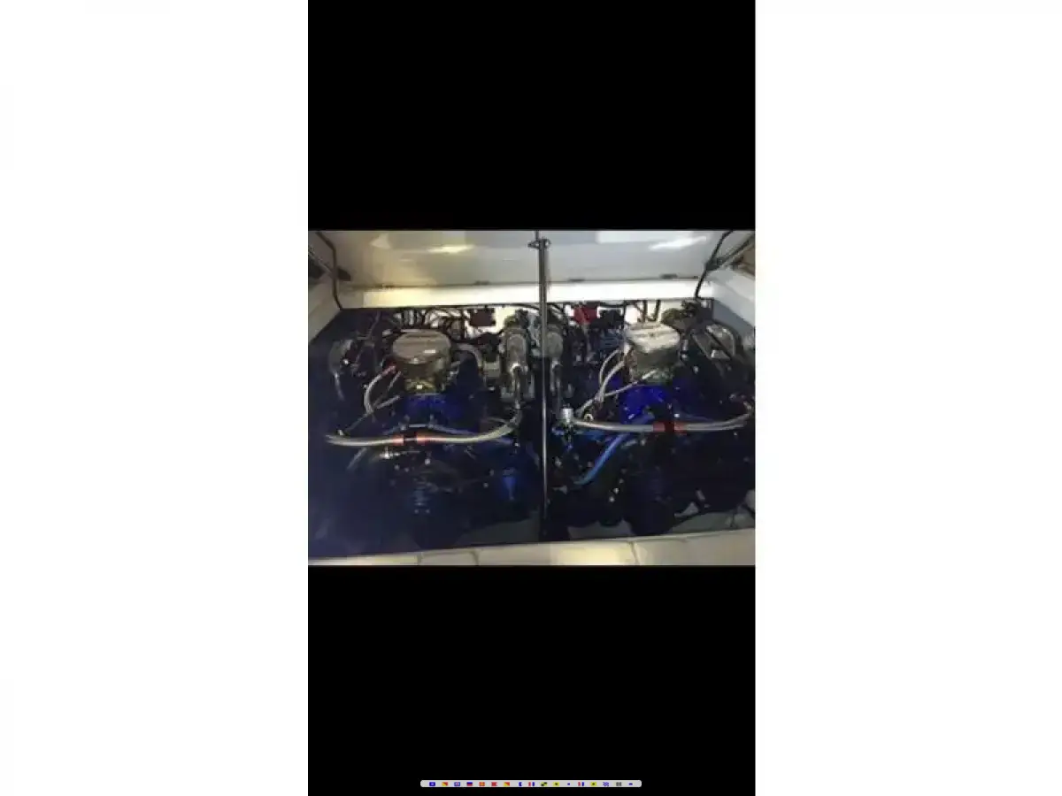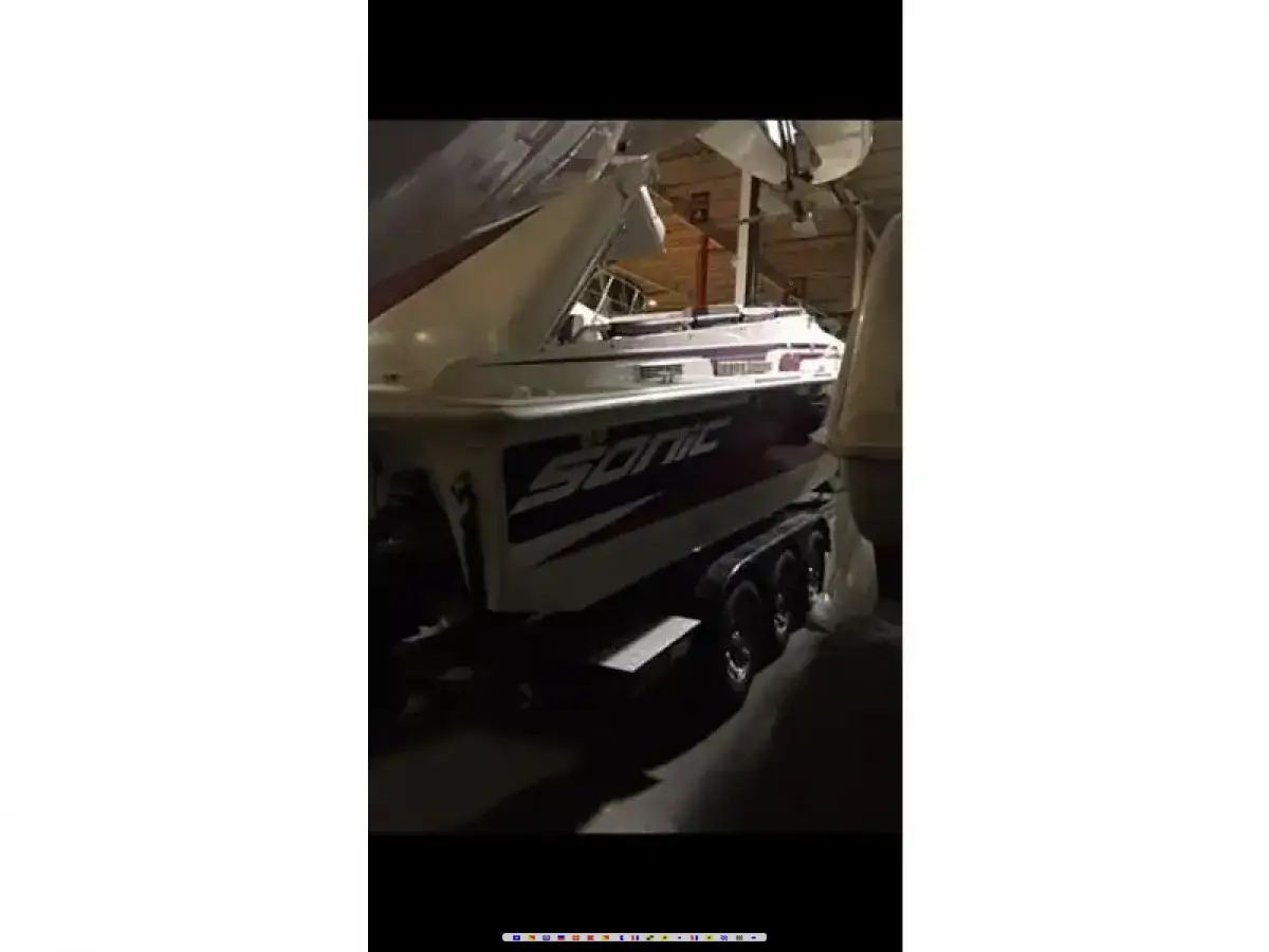 Beautiful 97 31ss sonic on a awesome meltrail tri axle trailer. Hp500 motors all redone, better cams, dart iron eagle heads, Merlin intakes, Nickerson carbs. Msd distributors and boxes. Make around 575hp. Bravo drives. Fresh water boat from new. Big kicker stereo. Huge luxurious cabin. Great rough water boat that runs 80mph.