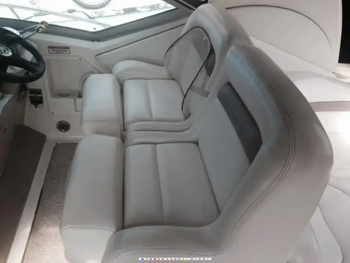 Sleeps 4 with convertible sofa - double berth. Galley with refrigerator, microwave oven, 2-burner stove top and ample storage. Cherry cabinetry, Corian countertops, U-shaped sofa (convertible), Dining table (removable) and Carpeting throughout (snap-on runners included). Ritchie compass, Raymarine SL530 GPS - chartplotter, Mercury SmartCraft tachometer and system check and Icom M422 VHF radio. Clarion AM - FM stereo and 6-disc CD player with helm remote, 15-inch Zenith flat screen TV - DVD combo in salon and Fold-down TV - DVD combo in master cabin. Hydraulic trim tabs and Dripless shaft seals. Cruisair Air conditioning - 12,000 BTU and 5kW Kholer generator - 430 hours. 30 Amp single shore power connection Extra 50ft 30 Amp power cord. 12V - 30 Amp battery charger, Dual battery switches in cockpit and CO2 detector. Lofrans windlass, controls at helm and deck. Two helm seats with bolsters, U-shaped cockpit seating with storage beneath. Cockpit wet bar with sink and Norcold fridge and Dining table (removable). Rod-holders, Cockpit lighting and carpeting (snap-on runners included). Full canvas enclosure, Extended swim platform with ladder and