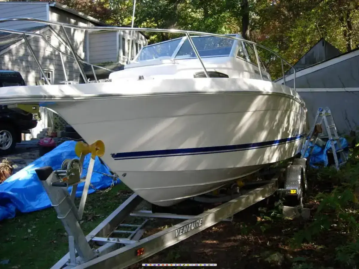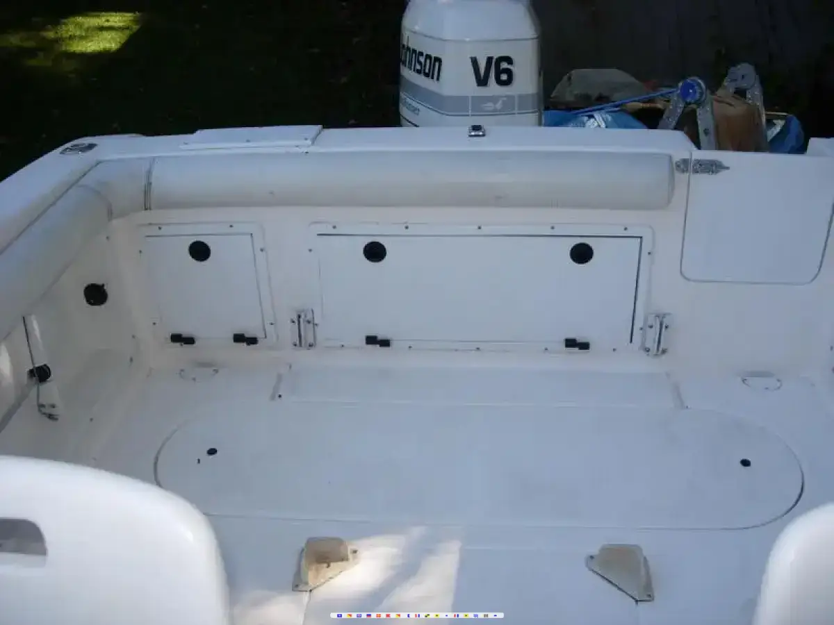 Has a Johnson200HP V-6 two stroke outboard engine . New Venture 5000 LB Aluminum Trailer with winch. Walk around DEEP V hull . Built in seats with bait storage below Fish Storage under back decking. Included New Hummingbird GPS Fish locator Deep finder. Stainless fold up swim ladder . 4 pole holders MSRP AS Equipped $28.5K broker appraised. Health issues causes sale