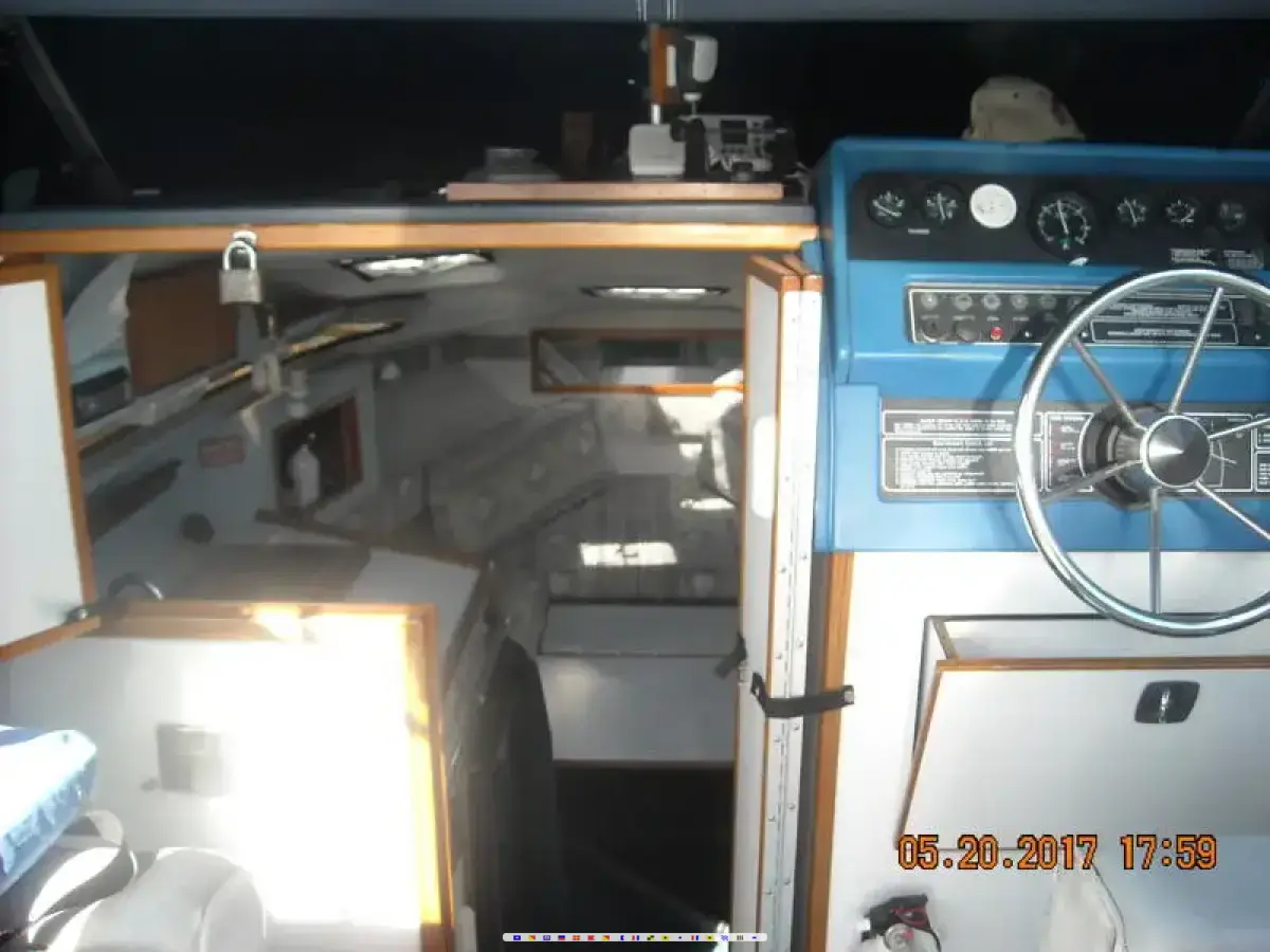 Powered by a single Fresh Water Cooled rare original 454 - 330 hp Mercruiser "big block" with a Bravo One outdrive. Has top speed of 40 mph . Includes Halon Fire Control System, Battery Charger and Switch, 2 12 - Volt batteries, Shore Power, 110 VAC and 12 VDC Electrical System. Electronics included are: Garmin GPSMAP 172C, Raymarine Model # 1265 Fish Finder - Depth Indicator with Transducer, West Marine VHF Radio Model #480, and AM - FM - CD 4 speaker stereo.