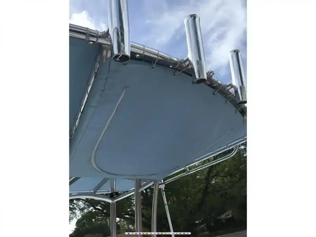 Holder web on top with 15 ft taco grand slam out riggers. All white underwater light. 4 color changing interior lights. Custom tbag 2016 ez loader trailer. And