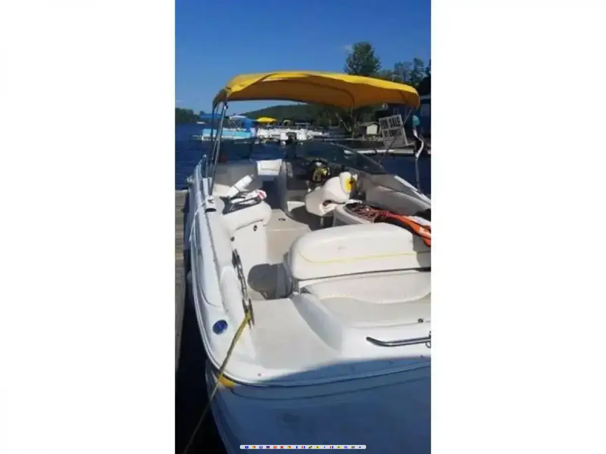 2004 Crownline 260EX powered by a Mercruiser 350MAG with a Bravo III drive. Price Includes ... dual batteries, GPS chart plotter - depth finder, stereo, and a tandem axle Load rite trailer. The big sister of the 240, the 260 EX also comes with Crownline's exclusive, stabilizing fast tab hull and boater pleasing standards that make it so appealing. Generous storage compartments throughout, a wet bar in the lounge area, bow and stern swim ladders, 48 quart carryon cooler and a portable head compartment are just a few. The cockpit sunbed requires no filler cushions. Faria instruments, bow and cockpit fiberglass liner, flipup adjustable TriTech suspension driver bucket seat and all the other Crownline standards. This vessel is offered subject to price change, or withdrawal without notice.