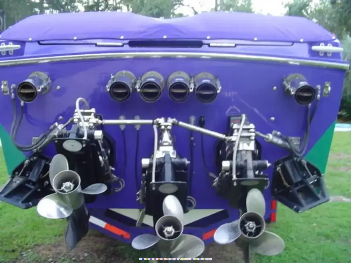 Detailed 2/08...This one is a head turner on the water!!! Powered by Triple Merc I/O's 525Hp each and only 185 original hours (Professionally maintained by Mercruiser mechanics)!!! Incredible graphics, immaculately cared for by the owner. Always covered and on a trailer. Comes with an 18K lb. Tri-Axle Eagle Trailer w/ Mag wheels and a spare. If you are in the market for a high performance boat make an appt to see this beauty today! You won't be dissapointed. Financing Available!