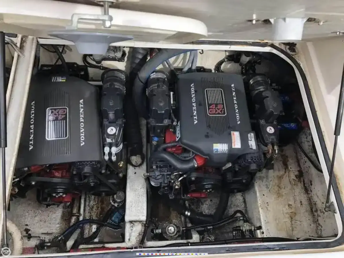 Twin 4.3 Volvo GXI-E with Volvo duo prop outdrives triple axle aluminum trailer shore power AC pre wired for genset gps full head and galley 120 hrs excellent condition