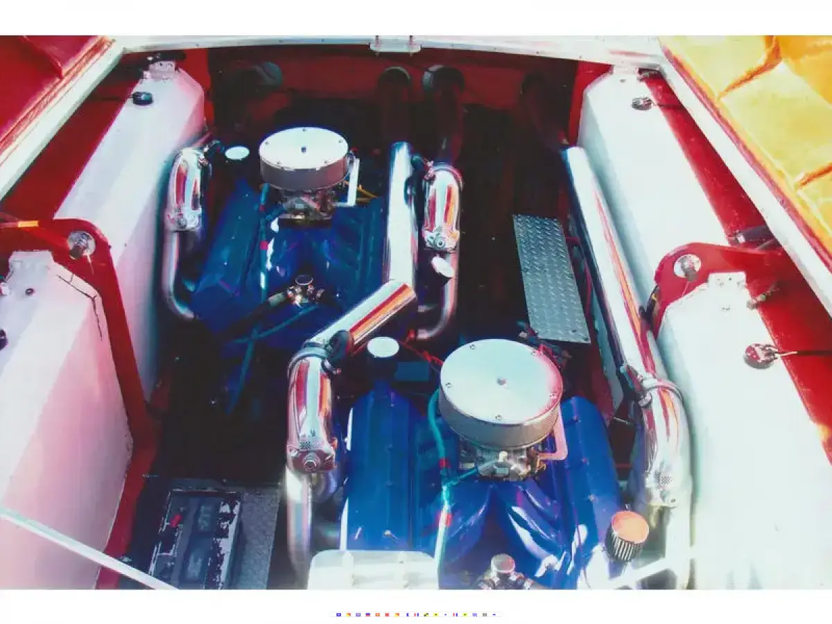 1986 Apache, stored in warehouse for the past 4 years. Original equipment still on boat. Manual race hatches. Full staggered set-up, #3 drives, large custom trim tabs, 500plus fuel capacity (2 rear tanks, 2 center and 2 front). Huber 1450 transmissions, 725 HP motors, custom sea strainers, 6-7 man bolster seating (removable front bolster). New purple cockpit. Boat never raced. All white hull. No cabin. 3 axle trailer included.