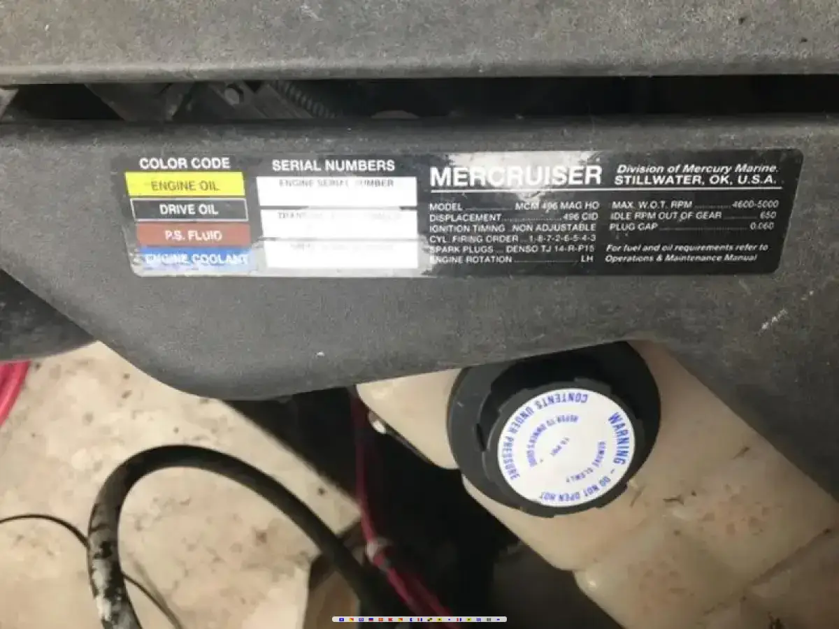 2005 Mercruiser 496 Mag HO with only 91 Hrs, Stainless Steel Prop, Hydraulic Steering, Sleeps 2, Carpeting, Lots of Storage, Bilge Pump, Coast Guard Safety Package, Anchor, Swim Platform, Trim Tabs, Wired For 2 Batteries w - Switch, Cockpit Cover, and includes a Tandem Axle Trailer with New Axles, Bearings, Wheels, and Tires. Always Professionally Maintained.