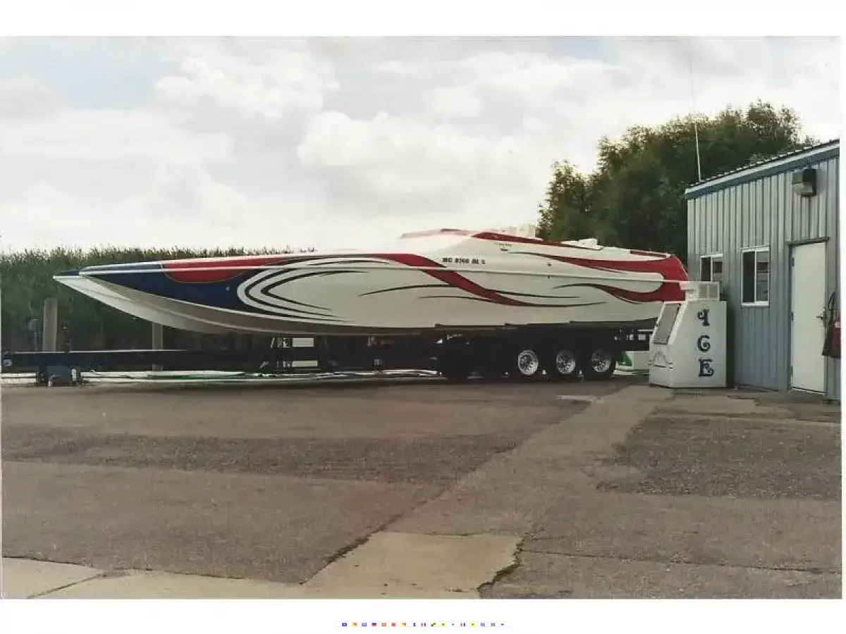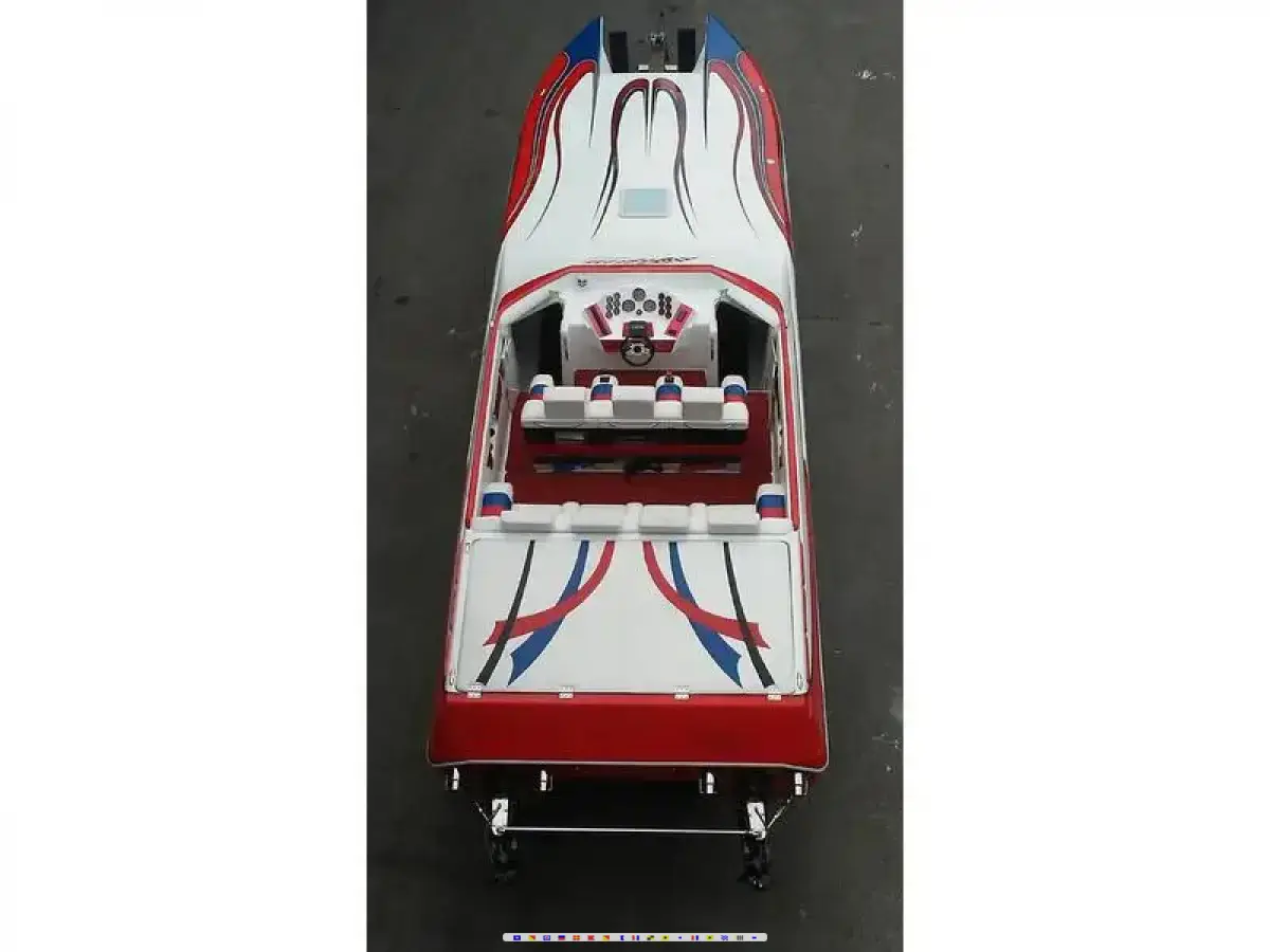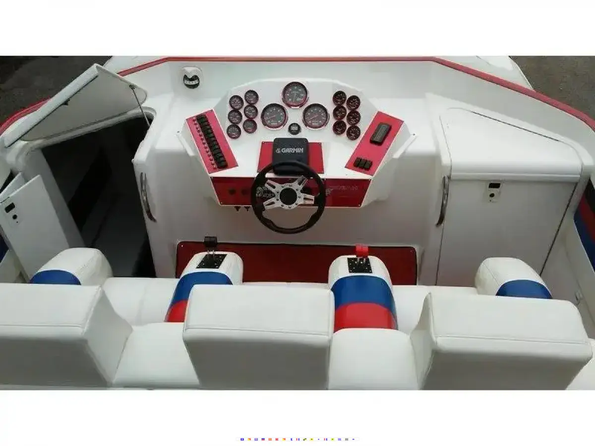 Hi-tech composite hull; Dual composite 110 gallon triple baffle fuel tanks; Custom built-in wind deflector; Stainless steel grab bars; Multiple storage compartments; Courtesy lights; Offshore triple front bolsters with race style head rests; Two built-in Gaffrig custom control quadrants (color coordinated); Quad bolster style rear seating with Low head rests (bench style).
