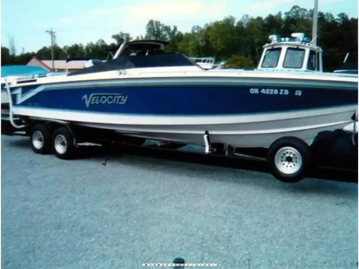 Twin Mercruiser 525sci motors upgraded to 575sci (600 hp at the flywheel, 575 at the prop). Twin bravo drives with 32 inch Spinnelli props. Twin 280 trim tabs. 125 gallon fuel capacity. External steering. Electric engine hatch, sun pad, electric pump out head, sink. Refrigerator, $3,000 sound sysytem, 800w explode stereo system, VHF radio, 2 subwoofers and 4 twin speakers. Blue/silver/white interior, shore power, drive showers, bolster seating, speedo, depth sounder, VHG Twin battery boxes, explosion proof switches (2), halon auto fire extinguishers, gas sniffer system for engine compartment. Under seat storage, side combing storage, behind dash storage, tinted windshield, custom cockpit carpet, custom dash, guages and controls, trim and drive trim switch, remote stereo control for passenger, lockable cabin door, hot water storage. Mooring cover, full storage cover, and Myco dual axle trailer, surge brakes, torsion bar susupension on trailer, very easy, stable tow.