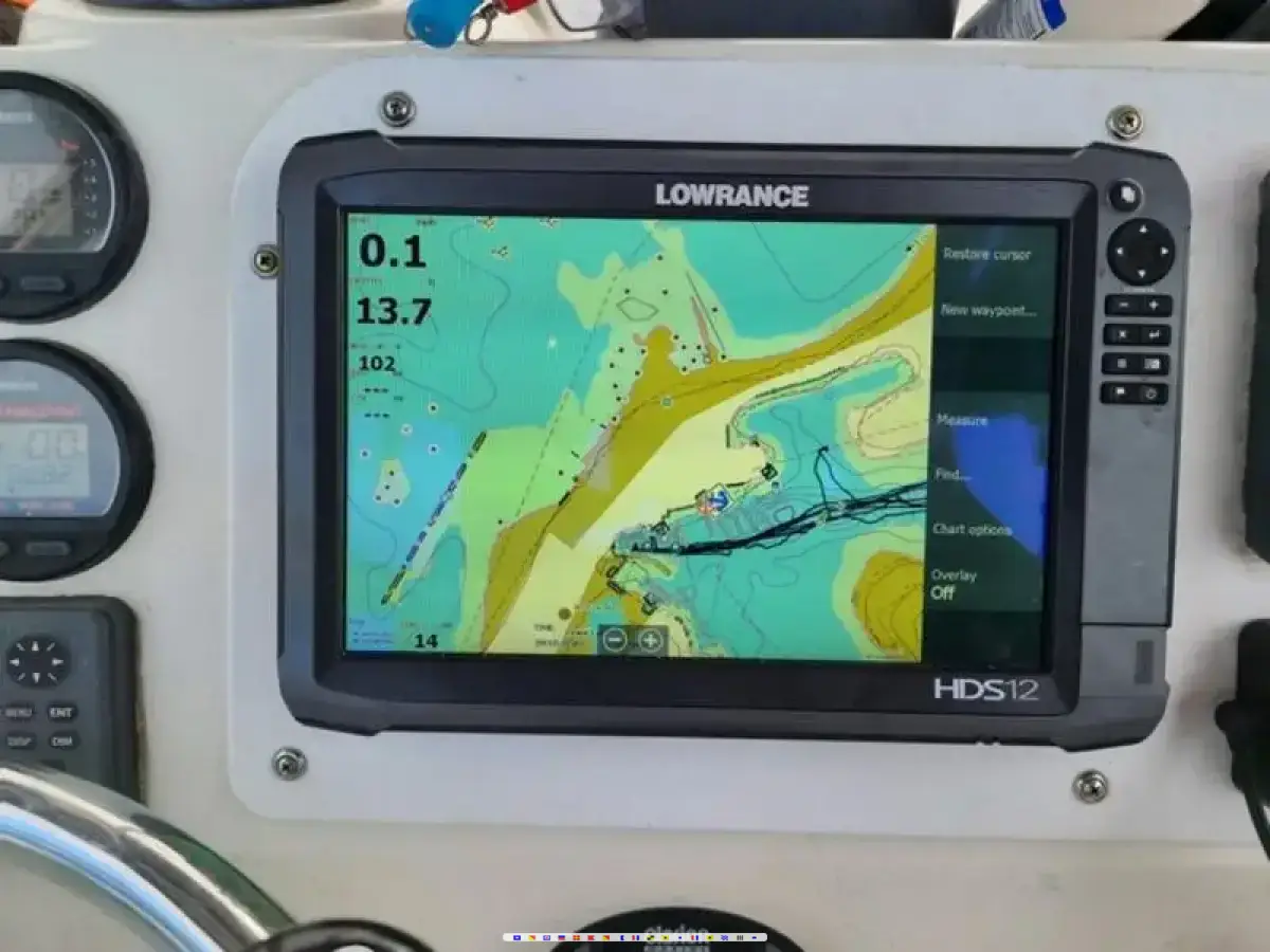 Comes with a substantial amount of rod holders, added tackle storage compartments, a 12" Touchscreen Lowrance HDS3 and 4G Radar.