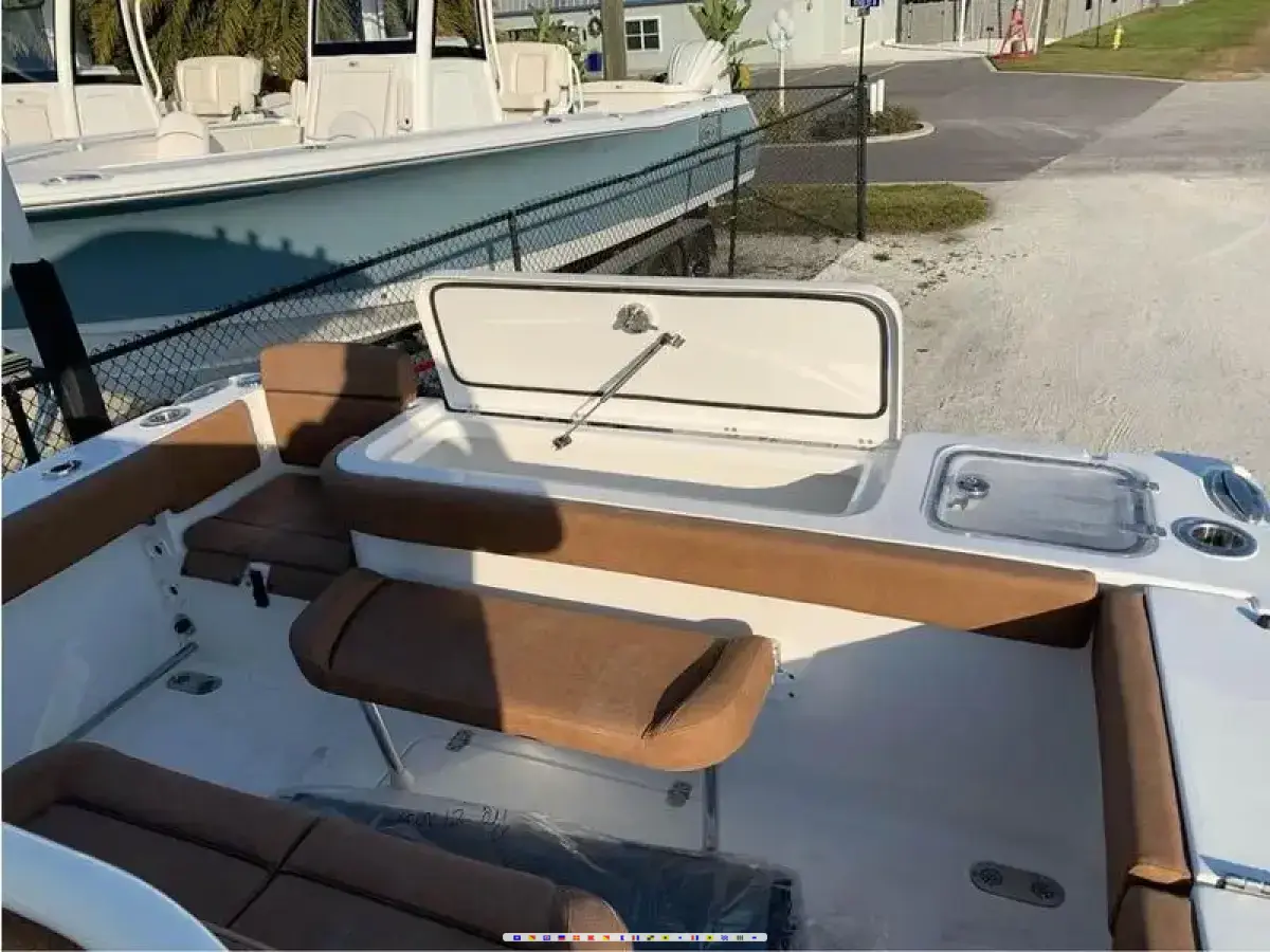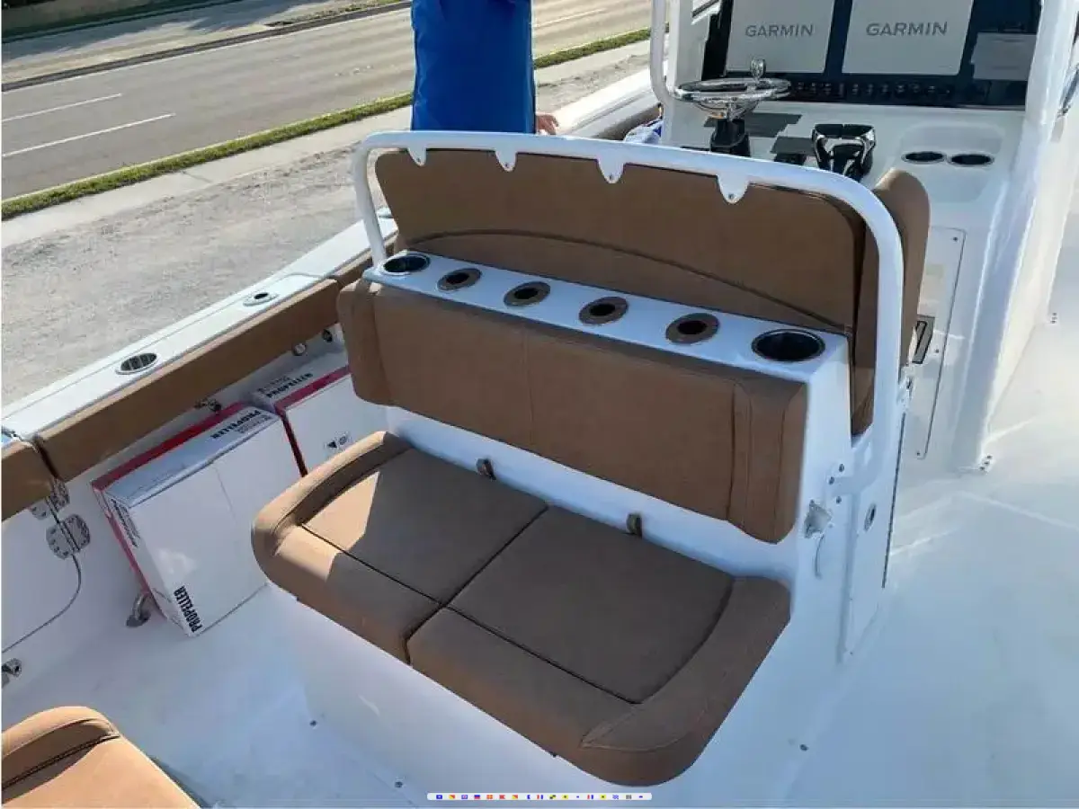 OPTIONS: Hardtop, Electronics Box, Leaning Post, Spreader Lights, Windlass, Bolsters, Trim Tabs, Fresh Water Washdown, Macerator, Forward Cushions, Dive Ladder, Rear Bench, Swim platform, Livewell, Head, , 3 Batteries, Perko Switch SE Entry Dive Ladder Brown Interior Seafoam Green Bow filler platform and cushion Dual Livewell Console Cover SELLER NOTES