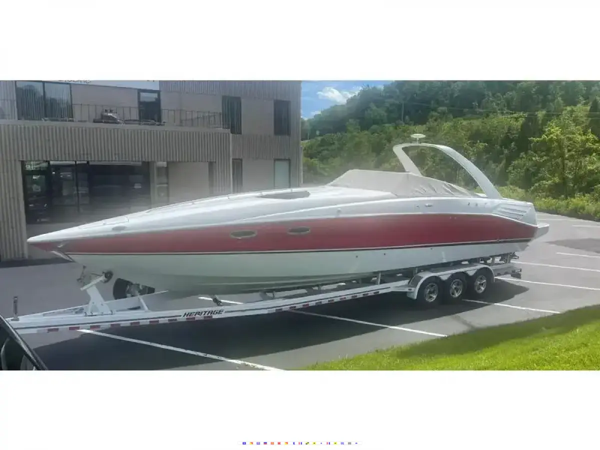 This is a clean boat w a Heritage Trailer. Generator is being serviced. Complete with Mercury Racing 525 motors Bravo 1 wImco -1 lowers.