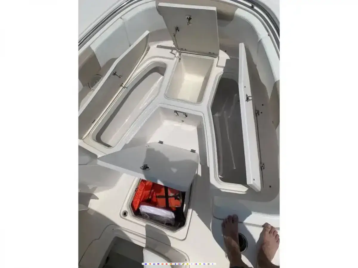 OPTIONS: Hardtop Electronics Box, Leaning Post, Spreader Lights, Windlass, Bolsters, Trim Tabs, Fresh Water Washdown, Macerator, Forward Cushions, Dive Ladder, Rear Bench, Swim platform, Livewell, Head, Outriggers, Raw Water Washdown, Sink, 4 Batteries, Perko Switch, Battery Charger EPIRB