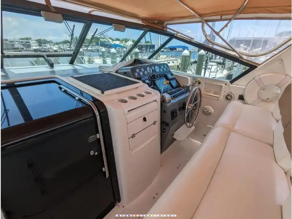 Tiara designed these high-end express cruisers with a wide beam, an open layout, and a massive cockpit with seating for a crowd. The twin 450 HP Caterpillar Diesels create generous power, making these boats a blast to drive. The SOLID teak and holly floors and quality hardware, really sets this boat apart from other production boats. A massive swim platform with twin access doors to the cockpit give the boat a luxurious pool side experience. These boats make a fantastic weekender that is a joy to drive, and is ideal for entertaining.