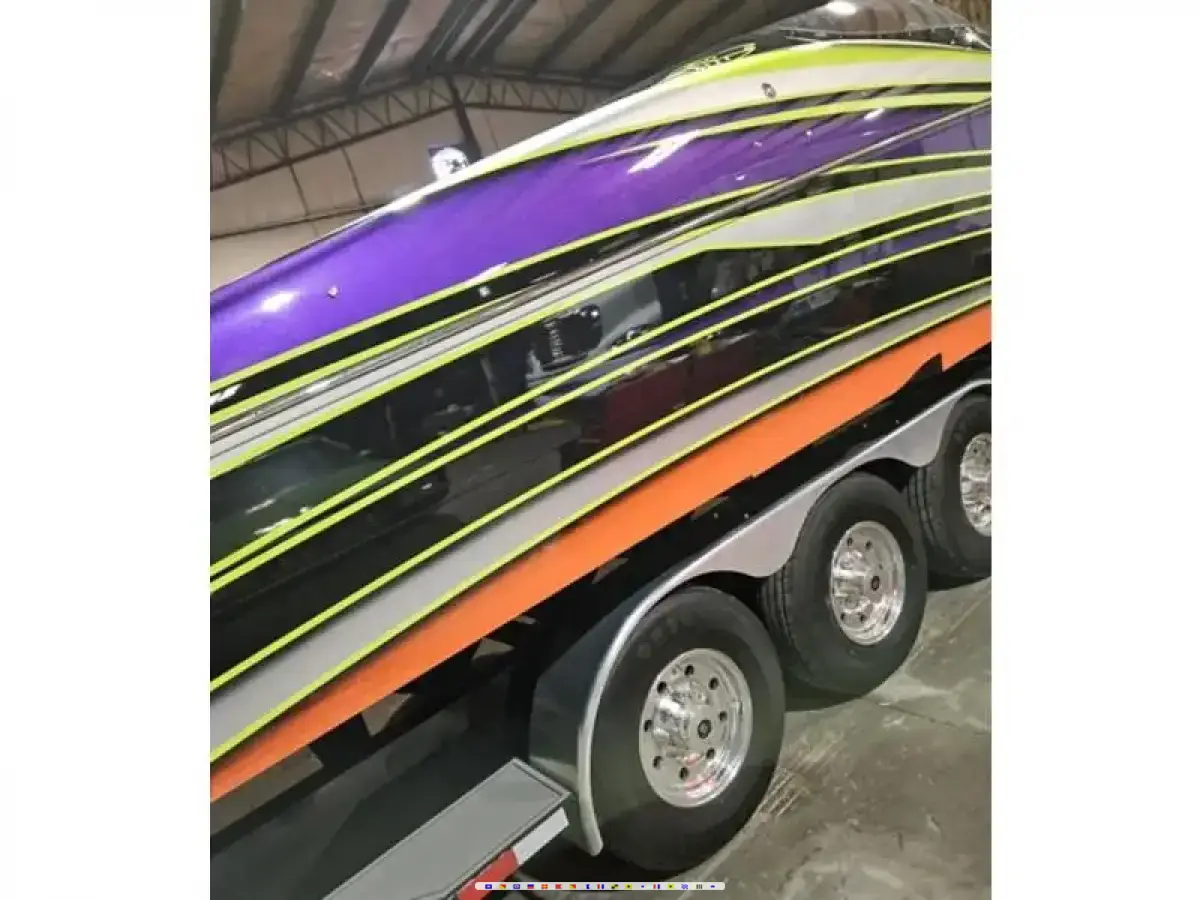 Mostly all pearl paints. 8 seater just was fully ceramic coated the whole boat and CTS TRAILER also was coated 10 yr WARRANTY COMES WITH A FULLY CUSTOM PAINTED TRIPLE AXLE TRAILER WITH 8 BRAND NEW POLISHED ALUMINUM ALOCAS ON 16 PLY TIRES AND FULLY LOADED FULL CARBON BUILD AND VERY FAST !