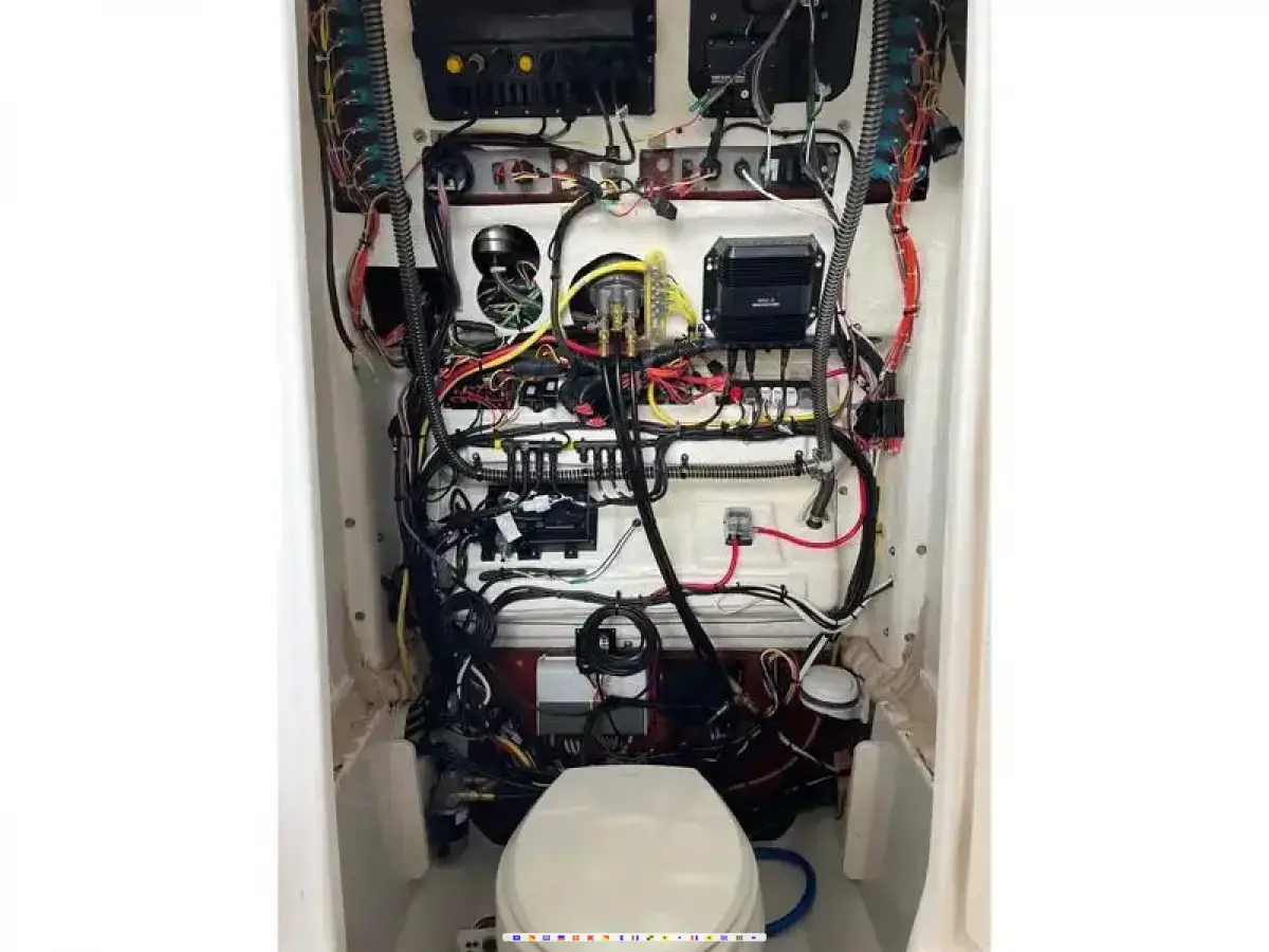 ProMariner ProSportHD 20amp on-board battery charger Single 36v Lithium Battery w - Stealth Alternator Charger for trolling motor. Blue Sea main battery switch w - ACR., Battery Charger Minn Kota Terrova I-Pilot (36v, 112lbs thrust, 87 shaft) Trolling Motor w - Spot Lock and wireless remote. Lumitec underwater lights (x2) transom mount. Yeti 75Q Cooler on sliding mount. Tilt Steering Wheel w - knob. Folding Leaning post. Removable Bow Cushions and Back -Bow Removable Casting Platform (fiberglass). Robalo OEM Canvass Full Boat Cover (Black) never used. Robalo OEM Canvas Console Cover (Black). Robalo OEM Canvas Leaning Post Cover (Black). Robalo OEM Bow Shade (White). Wireless Phone Charger USB and 12v Receptacle. SELLER NOTES Reason for Selling: Relocating, Last Service: Recent, Title Clear