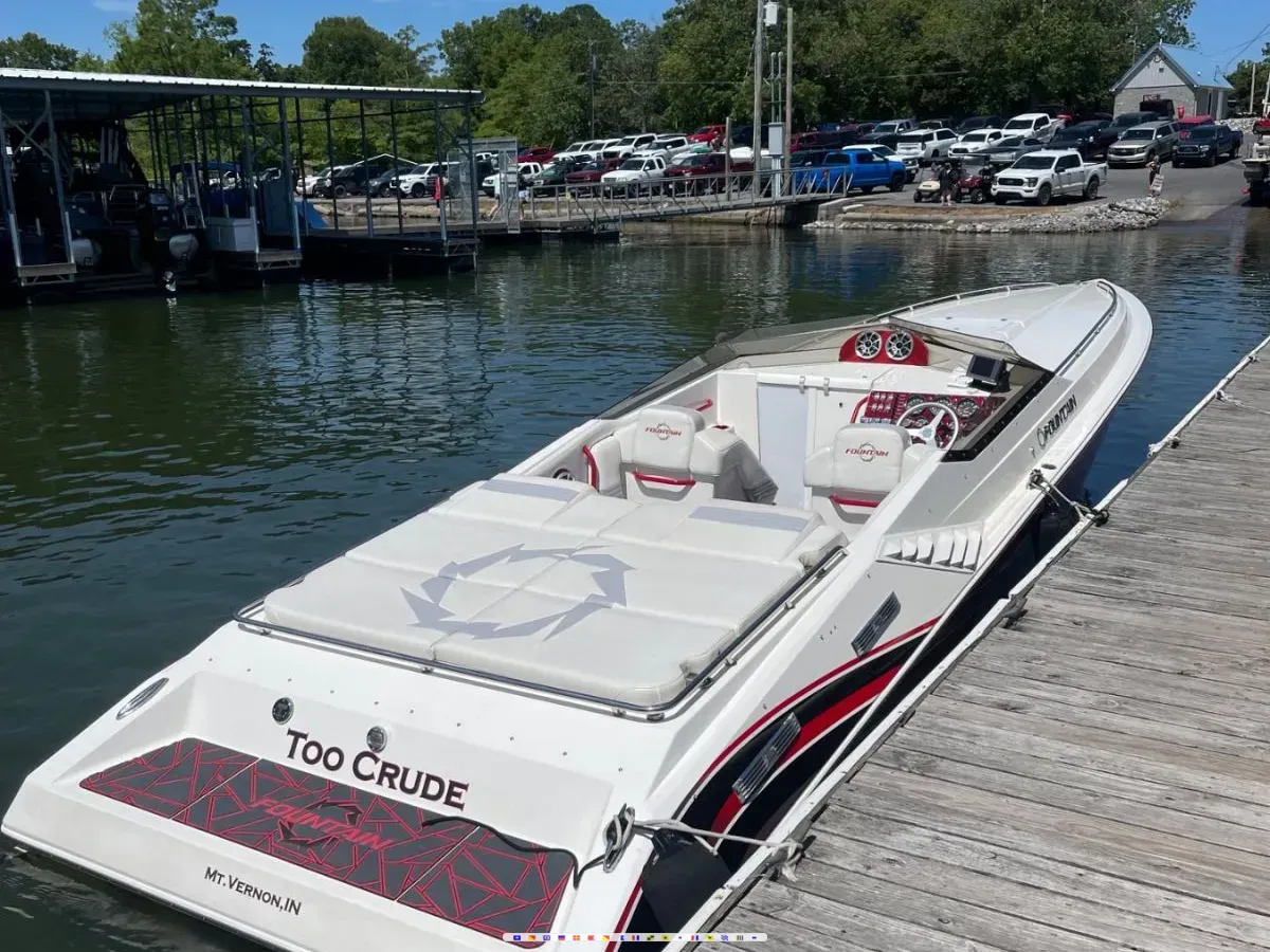 Extremely clean all original 2007 35 fountain executioner. Boat is powered by 496 mag ho. Hours are around 475 but scan out less because keys have been left on a few times. 496 Hos make a great setup in these boats. They plane out well, cruise good and top out around 78-79 in ideal conditions light load and 75-76 any day of the week. If you are familiar with 496s you can leave them flat out to the dash and not hurt them while your buddies with bigger engines break and tear up parts. Boat had a clean survey in 2021 that I can provide. Chances are if it passed a survey then it will always be good. Has livorsi monster gauges and controls, 3 layer seadek flooring, shore power, wet sounds sound system, 4 batteries, 2 sinks, porta potta, fresh water tank, bravo x outdrives with 32p bravo 1 props, 380 k planes. I have all records of everything ever done to this boat, including records from previous owners since it was new. Has GPS garmin unit mounted on dash. Things recently done were injectors were pulled on both motors and flow tested/cleaned. Besides that it just gets regular maintenance each year like oil changes, drive lube and sea pump changes. I spent over 18k on the trailer in 2022. It was completely sandblasted and painted, new hardware for the axles, custom rims, tires, electric winch and Jack, seadek, ladder, sound bar, enough lights to land a 747. The trailer in itself is a showpiece. Boat shows extremely well and I’m convinced it’s one of if not the best all original 2007 fountains out there. Boat has very few exterior or interior flaws. Exterior is about as good as it gets, interior is a 8 to 9 out of 10 for its age, passenger bolster does have stitching tear that could be fixed, the vinyl itself is fine it’s just the stitching. Only reason for selling is I’m ready for change, I might get a cat and I might get a center console. $92500willing to discuss offers.