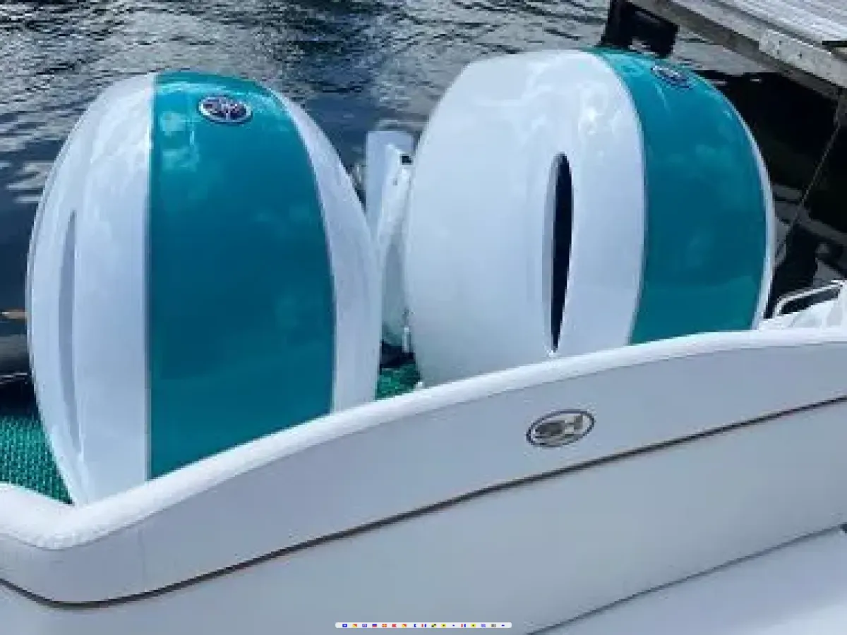 OPTIONS: T-Top Underside Color Electronics Box Underwater LED Lights Upgraded White Yamahas Ultra Entertainment Leaning Post Kingfish Rod Holders Deluxe Diamond Stitch Engine Covers Spreader Lights, Windlass, Bolsters, Trim Tabs, Fresh Water Washdown, Forward Cushions, Dive Ladder, Rear Bench, Swim platform, Livewell, Head, Raw Water Washdown, Sink, 2 Batteries, Perko Switch SELLER NOTES Reason for Selling: Buying Larger, Last Service: Recent, Bank Note