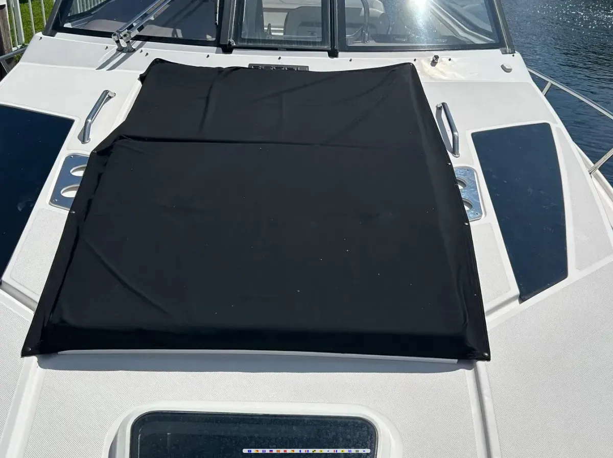 Condition Matters! This 2016 Regal 35 Sport Coupe is in Pristine condition, and she looks like a new boat. Transparency is a luxury-class cruiser with a single level cockpit floor which makes it easy to move around when underway. The full width hard top slides open automatically like a sun roof, and the fully enclosed cockpit is air conditioned for comfort. A slide-away back seat extends aft at the push of a button to create a large sun pad. Three steps below deck there is a full galley to port, an L-Shaped leather sofa to starboard, another sofa to port, a forward cabin, an aft cabin, and a head to port with a shower. The seatback of the forward sofa lifts automatically to convert the forward berth into a queen size bed. The galley features a two burner cooktop, refrigerator, microwave oven, stainless steel sink, and Corian countertop. There is a removable teak table for dining in the salon and another removable dining table in the cockpit. This boat has only been slept on one time so the interior is in like new condition.