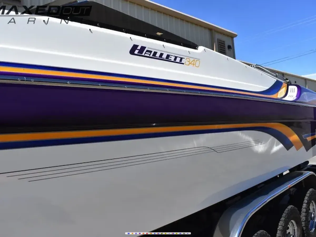 2000 Hallett 340 Mid Cabin Open Bow Equipped W Twin Whippled Mercury Racing 500 EFI’s (449/438 Hours), Imco SC Uppers W Bravo Lowers, 30P SS 5 Blade Props, Imco Dual Hydraulic Steering, Hydraulic Trim Tabs, 4 Batteries W Perko Switches, Gaffrig Gauges, Livorsi GPS Speedo, Mechanical Trim/Tab Indicators, Tilt Helm, Morse Offshore Controls, Stereo System, Fiberglass Swim Platform W Dual Ladders, Bimini Top, Cockpit/Bow Snap Covers & Triple Axle Hoss Trailer.