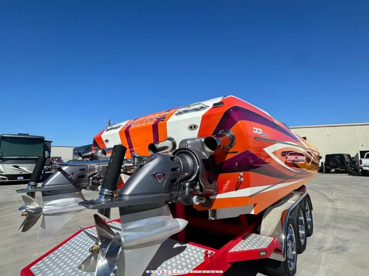 This is your chance to own this amazing DCB F32 luxury performance boat with carbon-kevlar layup, twin indy drives, F-series windshield, and full boat cover. It also comes with twin 725 Ilmore engines with low hours, mercury racing propellers, poker run interior, and a big stereo. The boat comes with a nice trailer.