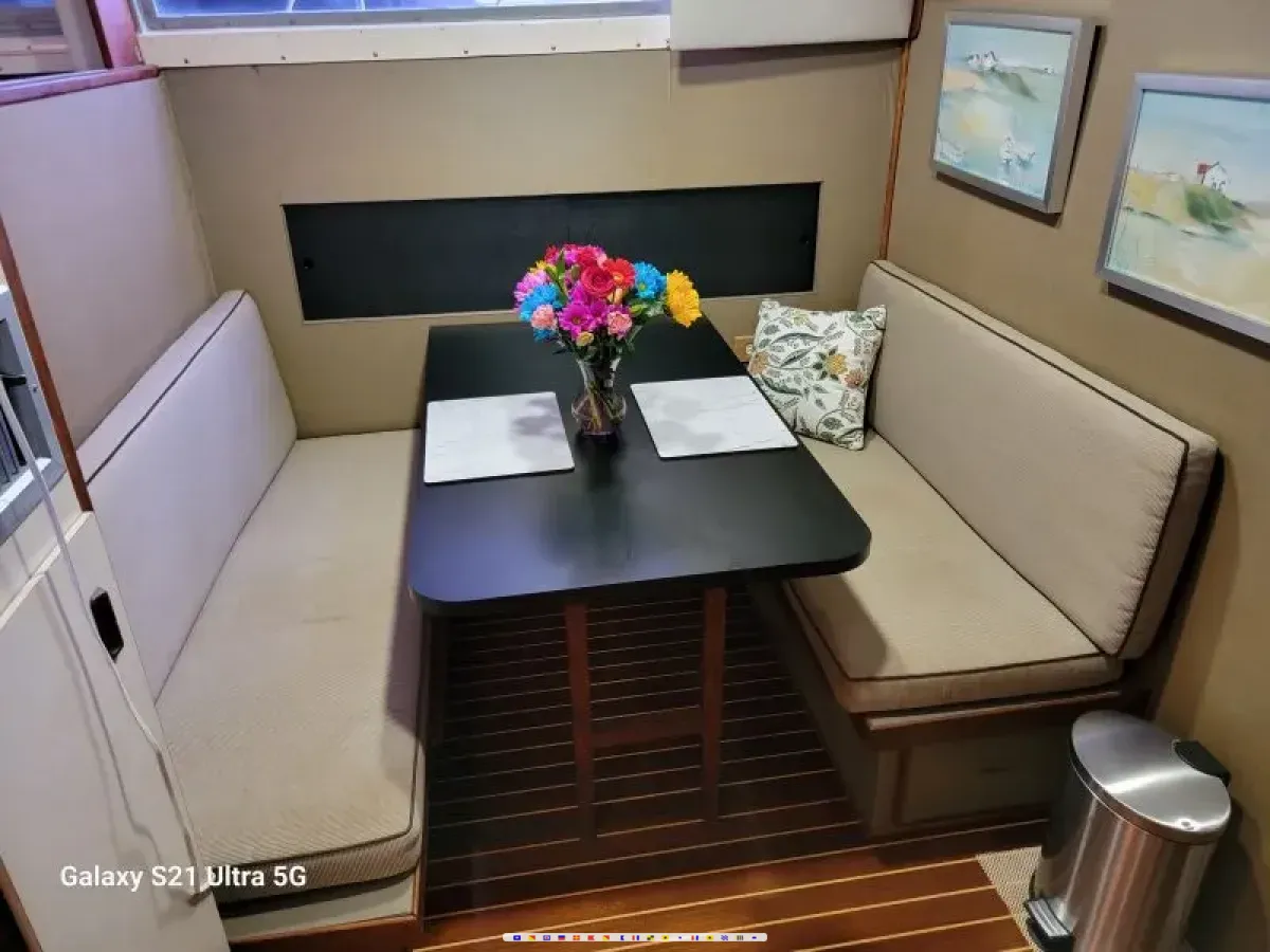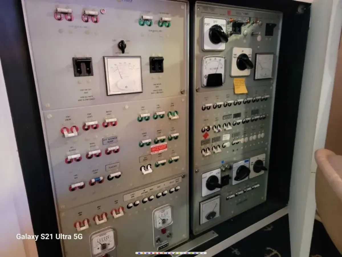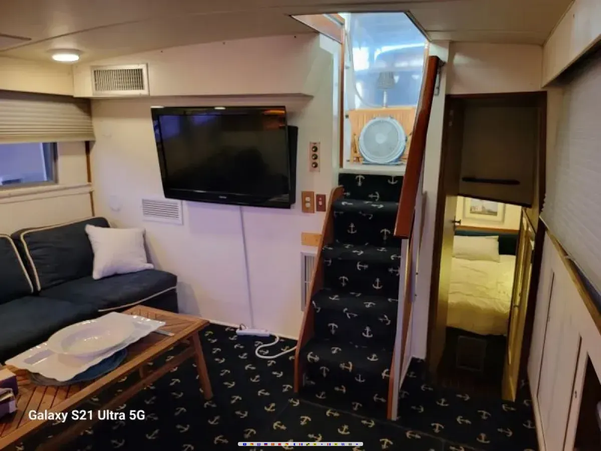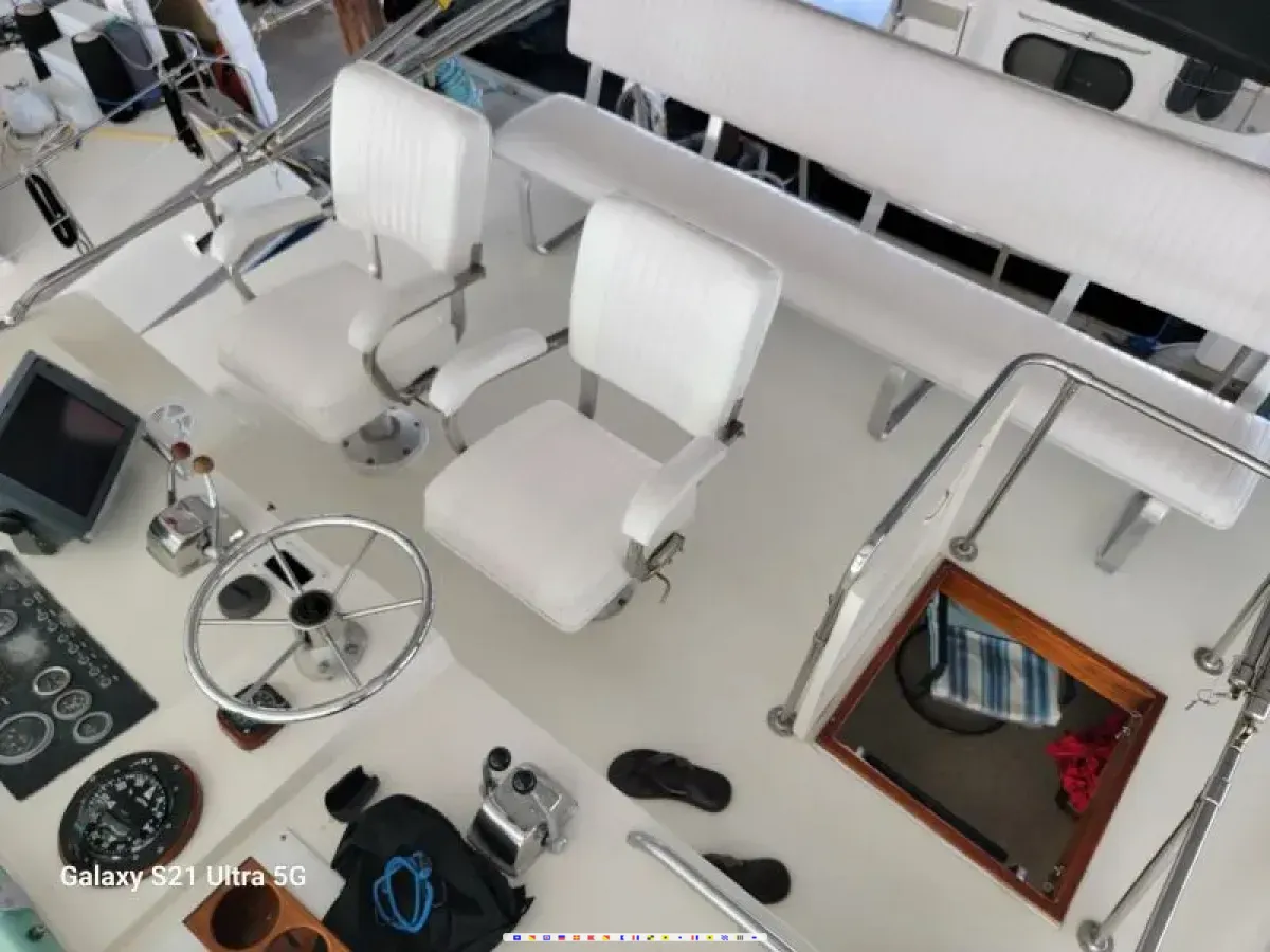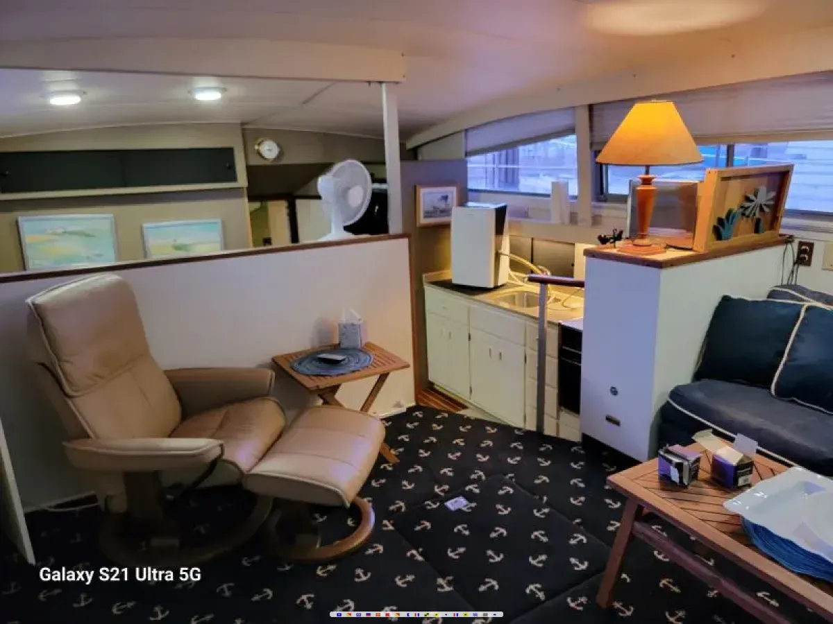 Midnight Sun Too is a 1979 model that has undergone an interior refit throughout the years. Both cabins and the galley now have teak and holly soles with fitted carpeting in the salon. The dinette has been redone and the interior furniture consists of a three-piece sectional settee with a Stressless (brand) tan leather covered swivel recliner with ottoman. She is also equipped with a late model Onan 11.5 KW generator and four (4) reverse cycle marine air conditioners. The gelcoat is shiny indicating a well-cared for vessel.